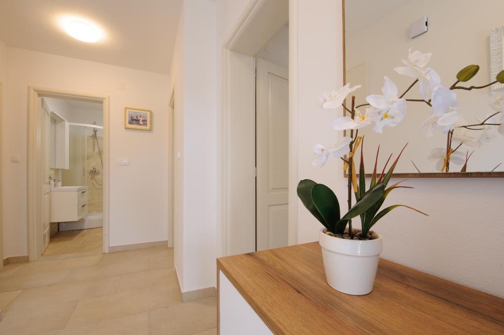 NOILE APARTAMENTE IVA SUNT IDEALE PENTRU VACANȚA DVS. Apartamentele Ive sunt situate în Sukošan, la numai 300 de metri de plaja Mala Makarska și la numai 10 kilometri de frumoasa Zadar. Apartamentul de la parter are 2 dormitoare, un living mare si bucatarie, precum si un balcon mare. Apartamentul este de fapt tot etajul casei. Apartamentul de la etaj are un dormitor, living, bucatarie, baie si terasa. Apartamentul este dotat cu o bucatarie functionala (frigider, aragaz, masina de spalat vase, doar la parter, vase...), televizor, aer conditionat, masina de spalat rufe, paturi duble mari. La cerere, putem adăuga și un pătuț. Curtea de 900 m2 a proprietății dispune de 3 locuri de parcare și un loc de garaj, grătar în aer liber, verdeață pentru copii... Pe o rază de 300 de metri se află magazine, restaurante, baruri pe plajă, locuri de joacă pentru copii, fast-food...