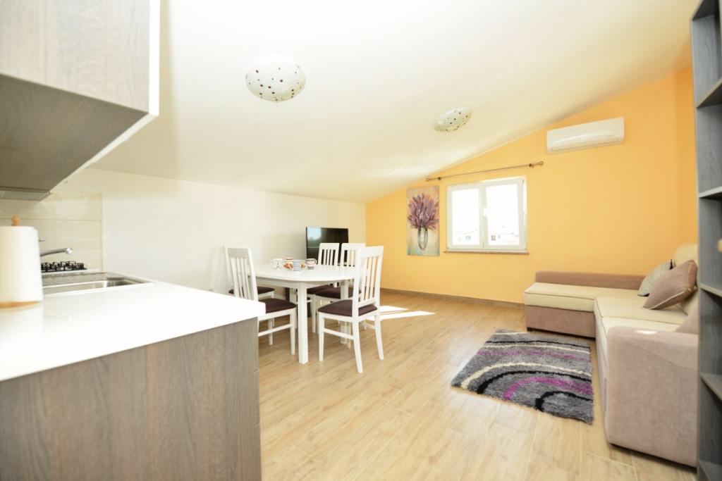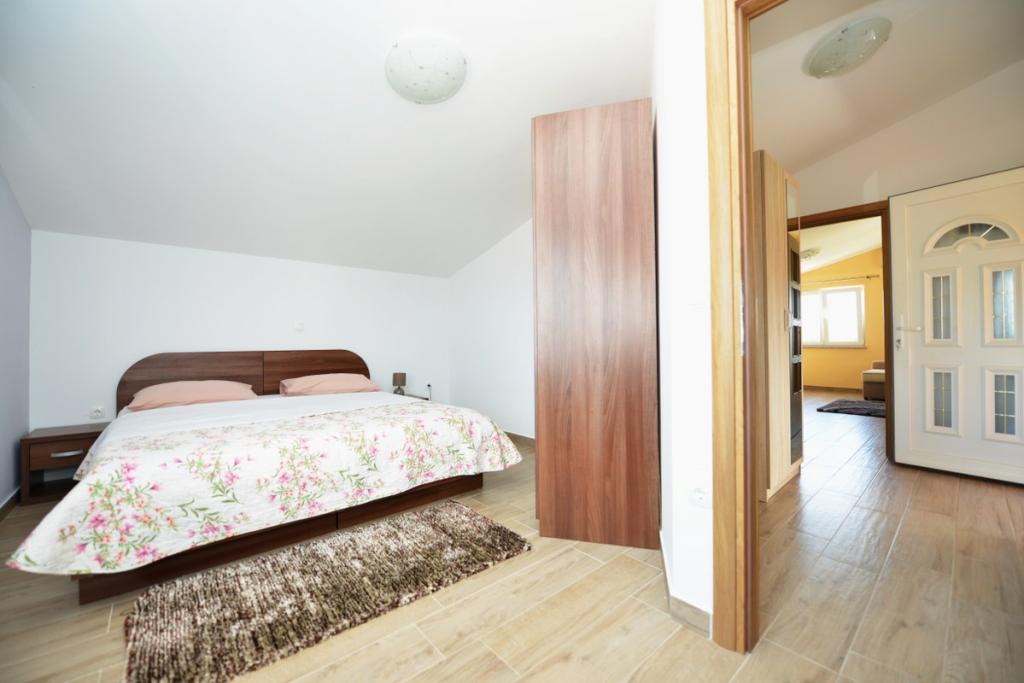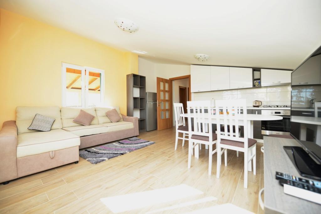 Vilă complet utilată și modernă pentru o vacanță în familie, cu o piscină de 8 x 4 metri în interiorul insulei Sukošan. Casa este situată într-un loc foarte retras și liniștit, la 4 km de plajă și la 15 km de Zadar, cu care este conectată printr-o autostradă (10 minute). Proprietatea este o casă cu două etaje, formată dintr-un dormitor triplu și trei dormitoare duble, două băi, două camere de zi și două bucătării, două balcoane și o casă separată pentru grătar, precum și un baldachin în față. Proprietatea oferă o priveliște frumoasă asupra Velebitului și a regiunii Ravna Kotar, iar la doar 4 minute de mers pe jos se află o poziție (100 m deasupra nivelului mării) cu o vedere panoramică asupra Sukošanului, a insulelor arhipelagului Zadar și a unui apus de soare minunat. Casa dispune de internet wireless nelimitat și gratuit, locuri de parcare gratuite, legume cultivate organic, disponibile oaspeților. Prin aranjament, posibilitatea de a prepara specialități tradiționale dalmate.