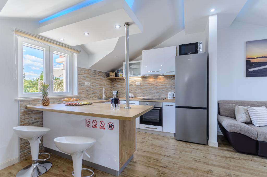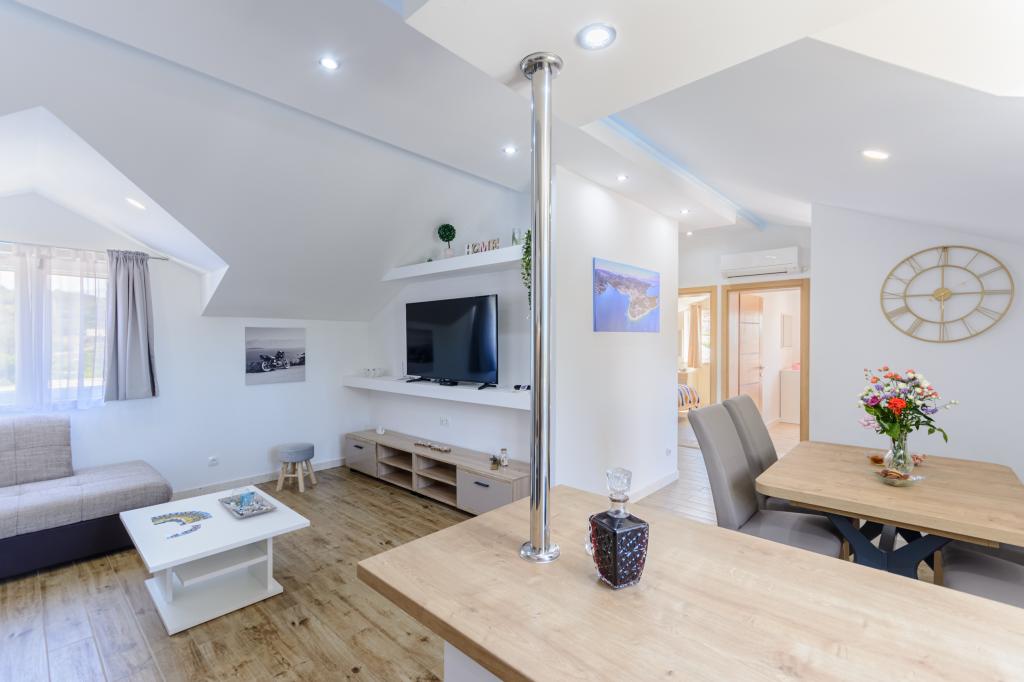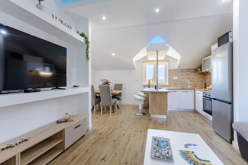 Bine ați venit în apartamentul nostru fermecător situat în centrul orașului Sumartin, pe frumoasa insulă Brač. La doar 100 de metri de mare, apartamentul oferă combinația perfectă de confort și comoditate. Apartamentul poate găzdui până la 5 oaspeți (4+1) și este ideal pentru familii, cupluri sau prieteni care doresc să se relaxeze și să se bucure de farmecul insulei. Bucurați-vă de un sejur liniștit la câțiva pași de plaje, restaurante și port. De asemenea, este disponibil un loc de parcare securizat. Așteptăm cu nerăbdare sosirea dumneavoastră!