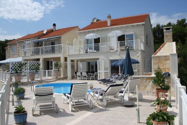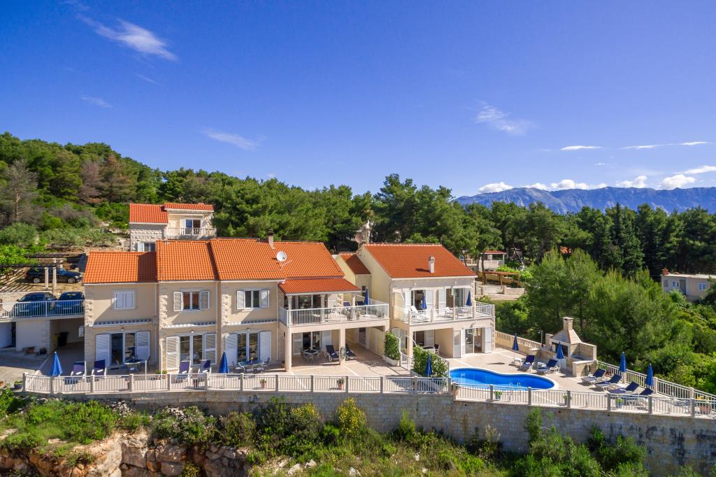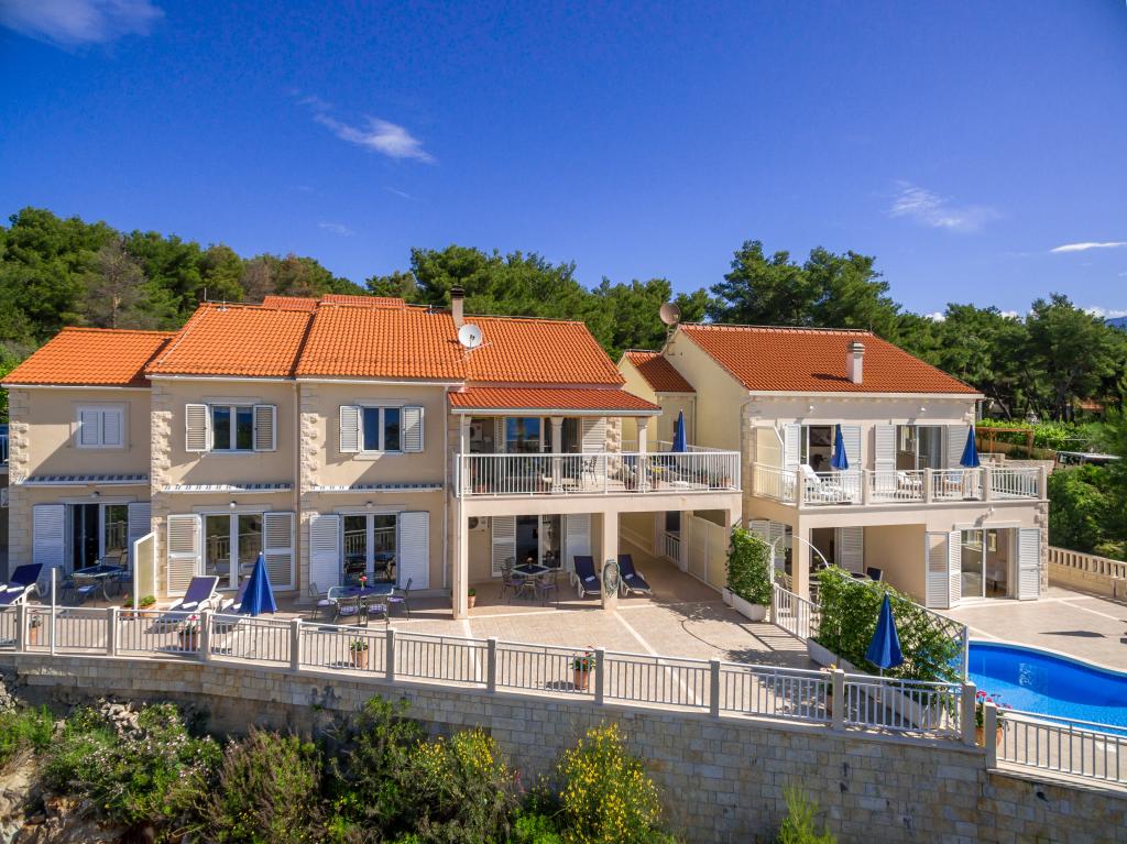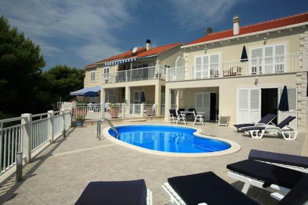 Mirula complex este format din vile individuale 8 +4 și trei apartamente, un 2 +2 și 4 +2 unul. poate găzdui un total de 16 10 persoane sau puteți rezerva unor unități de cazare (vile si apartamente). Vila are o piscină, care este proiectat exclusiv pentru oaspeții vilei, dar dacă vă rezervați vile si apartamente, împreună, oaspeții casei se pot folosi, de asemenea piscina. La fiecare etaj al vilei este o bucatarie complet utilata (aragaz, cuptor, masina de spalat vase, frigider, cuptor cu microunde, blender, toaster, filtru de cafea, espresso de cafea și filtru de cappuccino) și echipamente pentru bar. Pe terasa vilei este un șemineu din piatră cu accesorii si gratar electric. Patru dormitoare cu cinci bai. Apartamentele sunt complet echipate cu toate echipamentele necesare .. Fiecare camera are baie proprie, precum și internet wireless în toate de cazare noastre. Specificitatea complex Mirula este încă parte a unui pescuit mic și oraș turistic și cu vedere la mare și aproape de plajă.