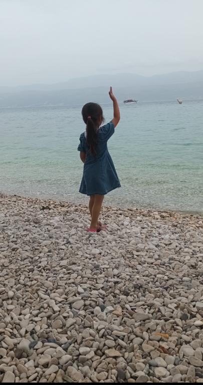 Un apartament complet utilat, recent renovat, la primul etaj al casei este de închiriat cu vedere la mare. Tot podea pentru tine. Există doar o altă garsonieră la parter, care este folosită ocazional doar de proprietari. Apartamentul se afla intr-un mediu linistit, la 300 m de mare - plaja. Totul este disponibil în 3 până la 10 minute de mers pe jos (supermarket, bancă, oficiu poștal, restaurante, cafenele și facilități de divertisment). Apartamentul este pentru 5 persoane; toate camerele sunt dotate cu aer condiționat, precum și livingul și sufrageria cu o bucătărie complet utilată (mașină de spălat vase, frigider mare, cuptor cu microunde, aparat de cafea, ceainic etc.). TV cu internet gratuit; baie mare cu toaletă, cabină de duș, bideu și mașină de spălat. Balcon și terasă cu vedere la mare, cu masă în aer liber. Curte cu șezlonguri, duș solar în aer liber, grătar și parcare gratuită cu lacăt. Acesta este locul potrivit pentru a vă relaxa, a vă odihni și a vă bucura de atmosfera mediteraneană cu arome de lavandă, rozmarin, salvie, dafin și smochine chiar de pe copac.
