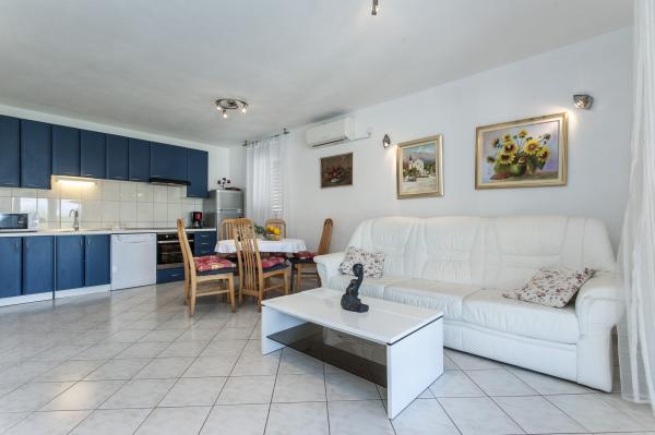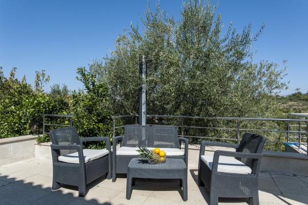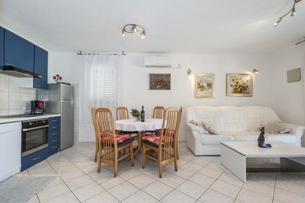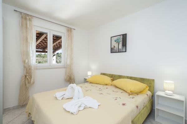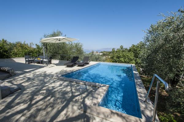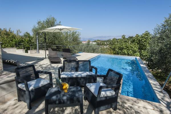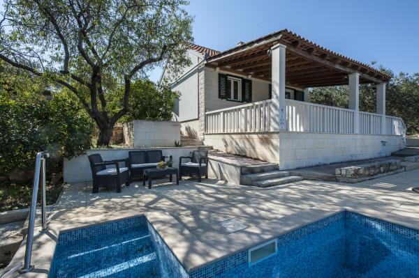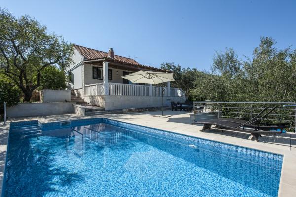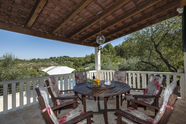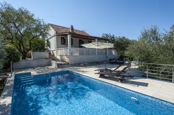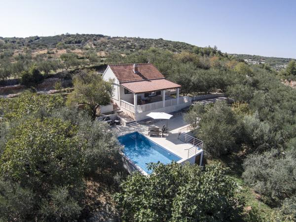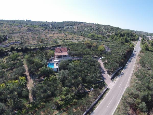 Casa complet echipate insulă, înconjurat de măslini. Cu o terasă mare acoperită oferă o vedere panoramică a orașului Bol, mare și orașul Split. Terasa acoperită are mobilier de grădină Pe latura de vest există o terasă cu un grătar. Casa are spațiu pentru două locuri de parcare. Casa are 2 dormitoare. În bucătărie, cameră de zi are o canapea extensibilă. Bucătăria are o mașină de spălat vase. Baia are un duș, toaletă, chiuvetă și mașină de spălat. Loc plin de plaje de nisip, care se poate ajunge cu mașina. În sat sunt diferite de catering și facilități sportive. Iubitorii de ciclism se pot bucura de 25 de trasee de biciclete ale insulei.