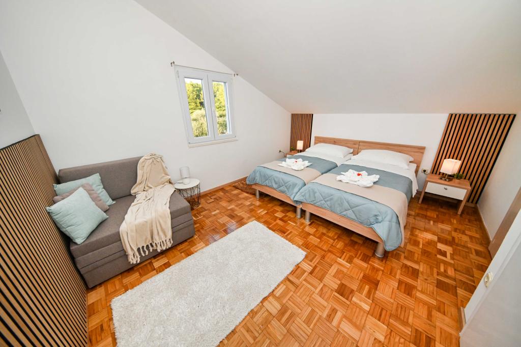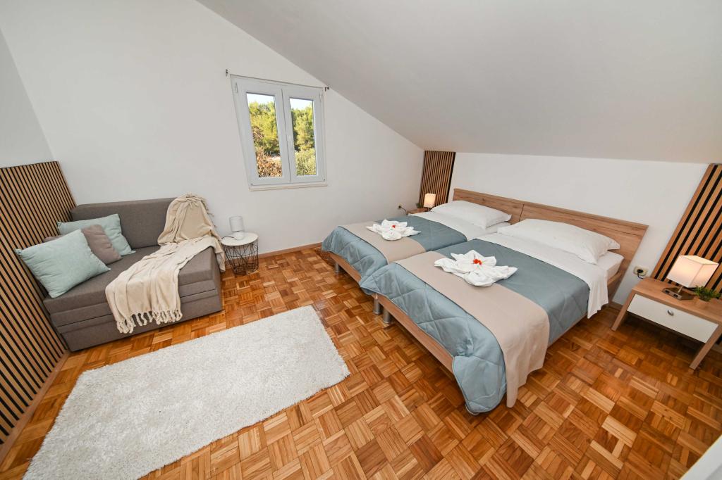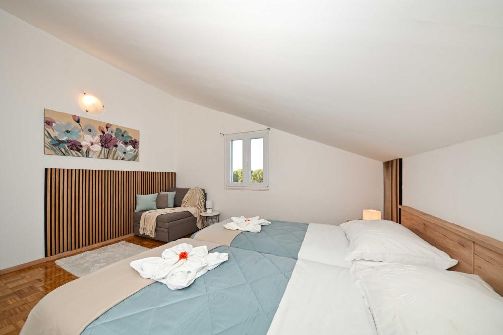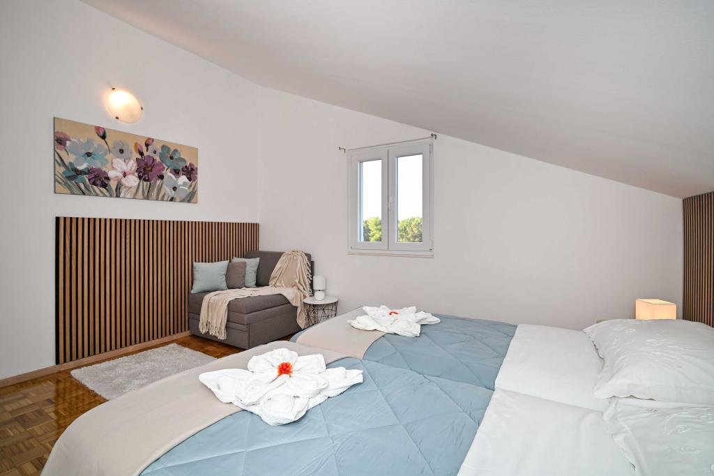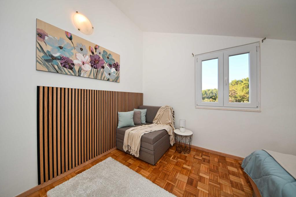 Dă-ne ocazia și vacanța de neuitat veți experimenta doar de noi. În apartamentele noastre superb amenajat lângă pădurea de pini și la mare vacanta va fi completă. Promenadă și căutarea apropiere, traseele de biciclete, aproape de Parcul Natural Vrana Lake, și parcurile Kornati și Krka cascade naționale, orașele vechi de Zadar și Sibenik, se va întâlni cu siguranță așteptările cele mai pretențioase gusturi. Complexul nostru este dimensiunea de 2500m2, înconjurat de măslini și păduri de pin. Din curte există o vedere frumoasă la mare-Pasman Channel. În areal se găsește: • Casa de familie, în cazul în care există două apartamente separate (pentru 4 și 6 persoane). • Apartamentele sunt dotate cu aer condiționat, TV, Wi-Fi și terase cu vedere la mare și piscină. • Pool: Lângă casa este un bazin de înot cu împrejurimile frumoase și șezlonguri • Piscina este situat, există două grupuri sanitare cu dusuri si doua bai, spatiu separat pentru rufe, care este Opremjen cu o mașină de spălat și