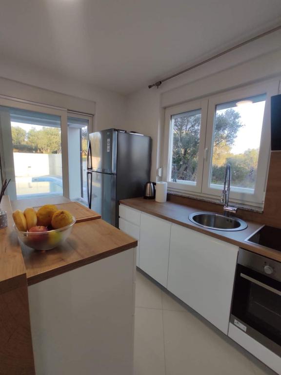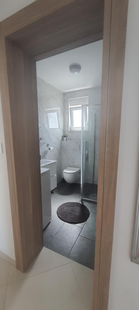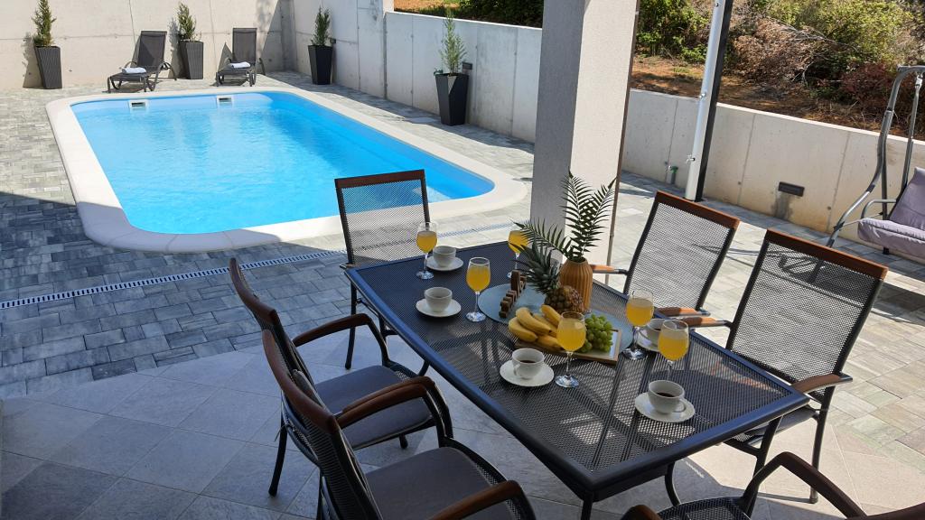 Apartament complet utilat cu piscina incalzita intr-o cladire noua cu un total de 4 apartamente. Nu sunt vecini în apropiere. Se găsește în natură printre plantațiile de măslini. La 400 m de mare, la 700 m de centru unde sunt multe restaurante, patiserii, magazine. Primul oraș este Biograd na Moru, aflat la 3 km. La o distanta de 2 km se afla centre comerciale Lidl, Plodine, Kaufland, Bure center.