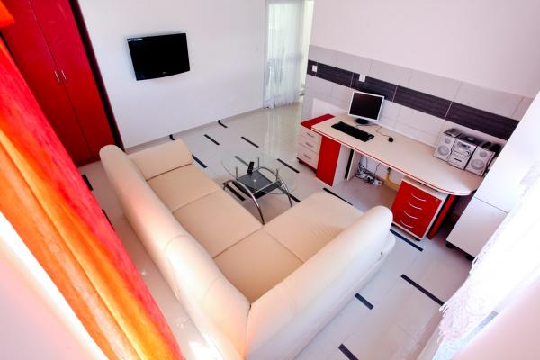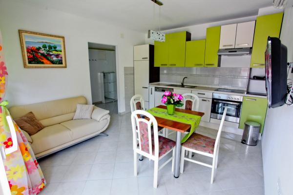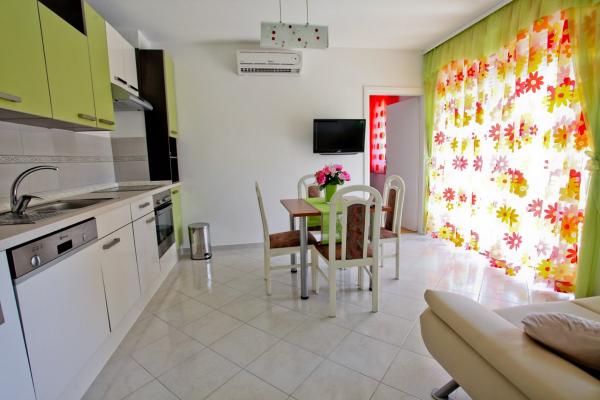 Noua facilitate de Villa Palma este situat la numai 120 m de centru. Complet echipate și apartamente moderne sunt situate într-o zonă liniștită din St. Philip James. Acestea sunt situate lângă mare, în fața singurului lagăr, iar distanța de la plajă doar aproximativ 200 m. Primul magazin este situat la doar 100 de metri distanță. Plaja este curat și frumos, și are o promenadă verde, Există dușuri, vestiare și este potrivit pentru copii mici. deoarece are un loc de joacă cu leagăne, nisip, balansoare, și pentru copiii mai mari și adulți există un teren pentru a juca volei și cafenele și fast-food. Aproape de centru se află un teren de baschet, și câteva magazine și un singur supermarket. De pe coasta există mai multe taverne, unde oaspeții se pot bucura de mâncăruri locale și pește, și există, de asemenea, o pizzerie excelenta cu alte oferte. Imobilul are doar 4 apartamente, dintre care 2 sunt pe 113 m2 și sunt potrivite pentru două familii și 8 persoane, în timp ce un apartament pentru 4 și unul pentru 5 persoane. ședere de bun venit și plăcut în această ambianță frumoasă