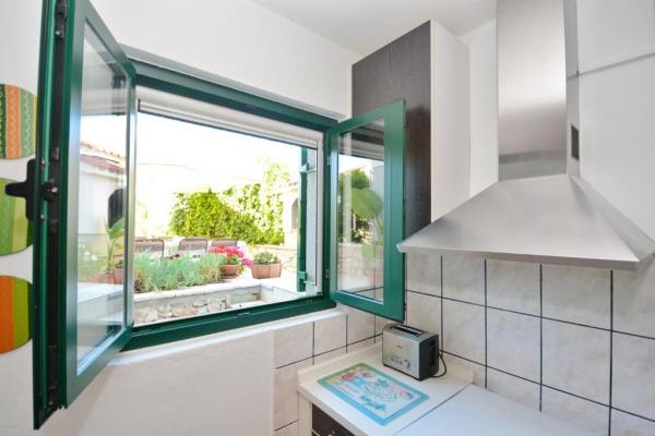 Apartament spatios, curat si bine-numit, departe de drum. Terasa mare doar pentru tine, cu gratar, plin de flori colorate, înconjurat de verdeață și grădină unde vă puteți liber poslužti fructe. Gazdele sunt foarte prietenos, politicos și discret. Suntem foarte multumiti cu locul și gazdele, locatia este foarte bun pentru o vacanță liniștită. Vă recomandăm să oricine care vrea o vacanță plăcută.