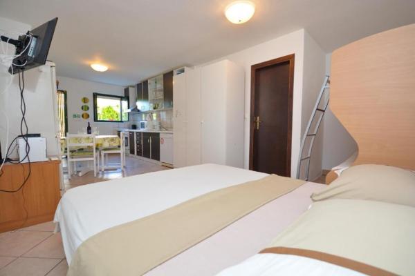 Terasă frumoasă, plină de flori, din care unul intră în apartament studio spațios. Neat, este echipat cu tot ce ai nevoie .. (Și mai mult). Aproape de plaja (aproximativ 3 min pe jos). Gazde primitoare! Cel mai bun ceea ce privește, doamna Shadow și domnul Davor din secțiuni de Matthias, Sven, Sylvia și Daniel!