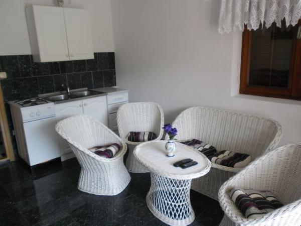 Apartament (pentru 6 persoane) - este format din cinci camere și o terasă mare. Dintre acestea, doua camere cu paturi duble, un dormitor cu doua paturi, living cu bucatarie si pat suplimentar și baie cu duș. App includ TV, ST, aer condiționat, frigider cu un congelator mai mare. App are o suprafata de 70 de metri patrati. Apartament (pentru 4 persoane) - format din trei camere, terase mari si balcoane. Dintre acestea, un dormitor cu pat dublu si o camera cu doua paturi, baie cu duș și living cu bucătărie și pat suplimentar. App includ TV, ST, aer condiționat, frigider cu un congelator mai mare. App are o suprafata de 50 de metri patrati. Ne sunt situate la sfârșitul nu atât de aglomerat pe plajă. Sejururi separat de camera. Vedere frumoasă a insulelor și a mării, gratar, parcare mare de 70 de metri ACȚIUNE APP A4 (a) termenul APP A6 (b) termenul termen