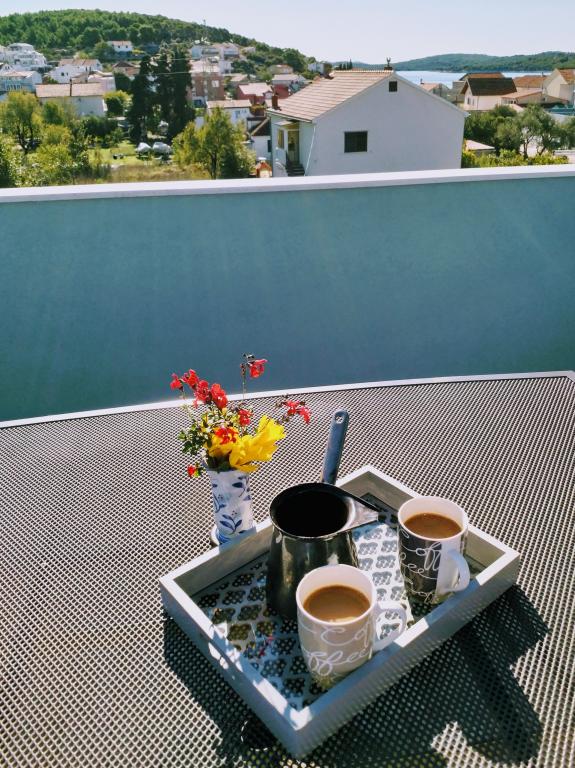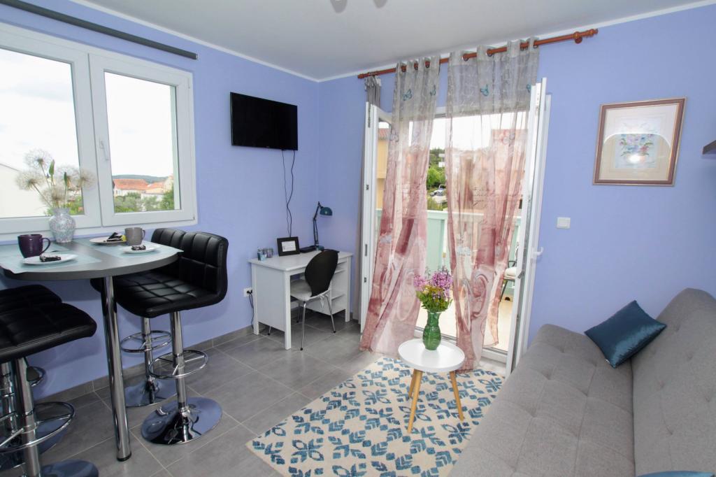Apartamentele Lilly's Cosy Cove sunt locul ideal pentru o vacanță liniștită în liniște și împrejurimi naturale. Alegeți unul dintre cele 3 apartamente confortabile și decorate cu gust, fiecare cu spațiu în aer liber pentru a vă relaxa și a vă bucura. Imaginați-vă că vă treziți dimineața cu cântecul melodic al păsărilor și atingerea blândă a brizei. Începeți ziua cu o ceașcă de cafea și savurați mirosurile produselor de panificație proaspăt coapte din bucătăria noastră pe care le puteți comanda. Bucurați-vă de vederea la mare și la grădina noastră plină de verdeață și culori. După micul dejun, faceți o plimbare pe îndelete până la plaja cu pietriș și răcoriți-vă în marea albastră cristalină. Dacă îți plac plimbările în natură, îndreaptă-te din curtea noastră prin plantații de măslini spre golfuri ascunse care ți aparțin doar. După o zi de relaxare, reveniți la parfumata noastră oază de liniște, la o masă pregătită pentru dvs. prin aranjament de către maestrul nostru bucătar Joe. Gustați câteva dintre preparatele noastre din diferite părți ale lumii. După cină, mergeți de-a lungul mării până în centrul orașului Tisno, urcați la una dintre biserici și bucurați-vă de vedere.
