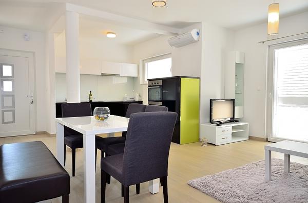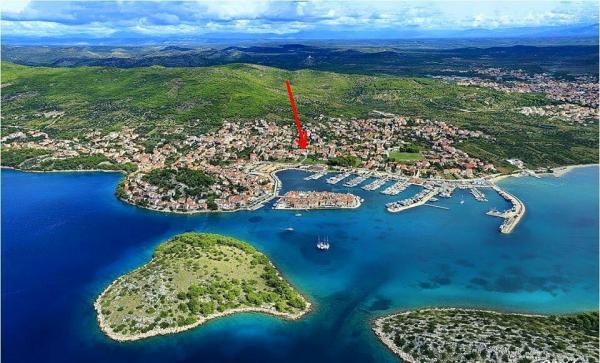 Apartament cu doua dormitoare Tribunj- pat, toalete, toalete baie, bucatarie si living, terasa, parcare, aer condiționat, la 300 de metri de plajă, 200 m de centru, 100 m de magazine și restaurante .