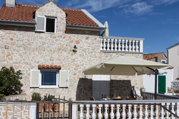 Casă de piatră frumoasă în care apartamentul, decorat cu o mulțime de dragoste și decorate cu mare atenție la detalii, astfel încât te face să te simți relaxat și confortabil în timpul sejurului dumneavoastră. Casa este situată în inima micului sat pescăresc Tribunj, în primul rând. La doar câțiva pași distanță de plaja, restaurante, cafenele, magazine si orice altceva care va face vacanța mai ușoară și mai cuprinzătoare. Apartamentul are o suprafata de 70 mp și este proiectat pentru a găzdui până la 6 persoane. La parter are un living spatios, care este separată de masa de bar de bucătărie și baie, iar la etaj sunt doua dormitoare. Toate camerele oferă vederi superbe la mare, precum și două terase mari, care fac din acest apartament special.