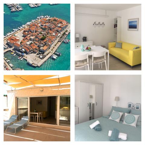 Specificitatea Apart este în prim locația - 3 minute de mers la plaja, la 2 minute de magazine, la 3 minute pe piață și 4-5 minute de centrul vechi al orașului Tribunja unde puteți găsi o mulțime de diferite cafenele și restaurante. Marina frumos este, de asemenea, la o plimbare de 5 minute. Apartamentul este nou și foarte confortabil, are 2 dormitoare, 2 terase, bucatarie si living, o baie și o toaletă suplimentară, WiFi și aer condiționat. Apartamentul este intr-o zona linistita si este, de asemenea, în centru, doar 4-5minuta orașul vechi veți găsi o mulțime de distracție, o mulțime de restaurante, baruri, magazine de înghețată și posibilitatea de vizite turistice la diversele insule și parcurile naționale.