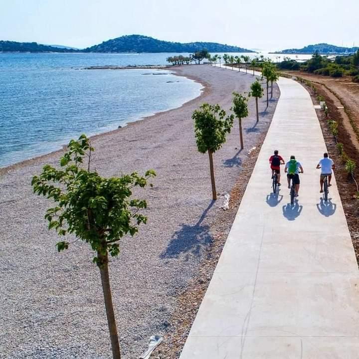 Vila Antonela este situată într-o zonă liniștită și foarte frumoasă din Tribunj, pe un teren privat de 2500 m2. Apartamentele cu două dormitoare au o vedere excepțional de frumoasă asupra podgoriei noastre, a plantației de măslini, a mării și a arhipelagului. Este înconjurată de frumusețea naturii: viță de vie și măslini... Dispune de 3 apartamente cu două dormitoare 3×A4, care au o terasă cu vedere la mare, și două apartamente cu un dormitor A2. Toate apartamentele au terasă sau balcon. Pentru grupuri mai mari, există mese la umbră în fața casei, iar curtea este împrejmuită, astfel încât copiii să se poată juca în liniște. Apartamentele sunt complet echipate: TV LCD prin satelit, aer condiționat, internet (bandă W), încălzire centrală, parcare. Există o parcare privată mare, grătar, curte împrejmuită la umbră, cu o masă și scaune potrivite pentru socializarea oaspeților și pentru joacă a copiilor. Vindem produse locale, cum ar fi uleiul de măsline... Bine ați venit!
