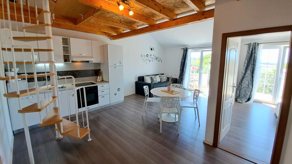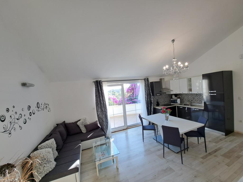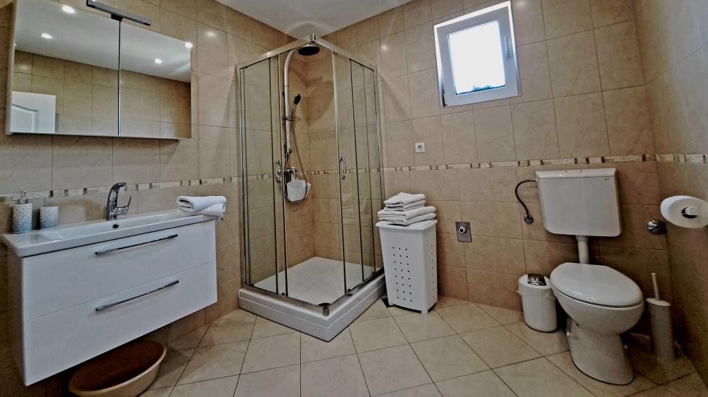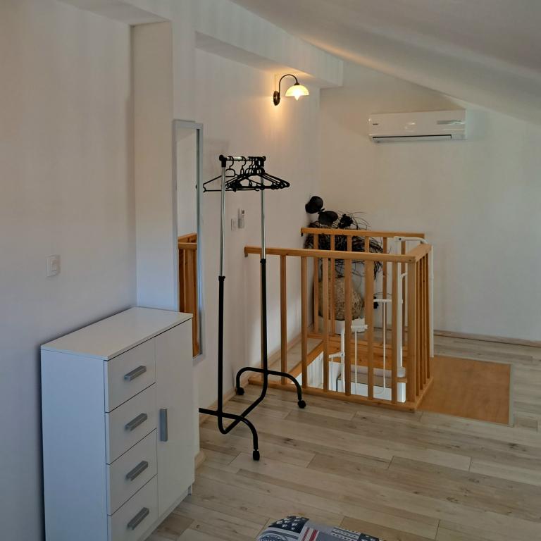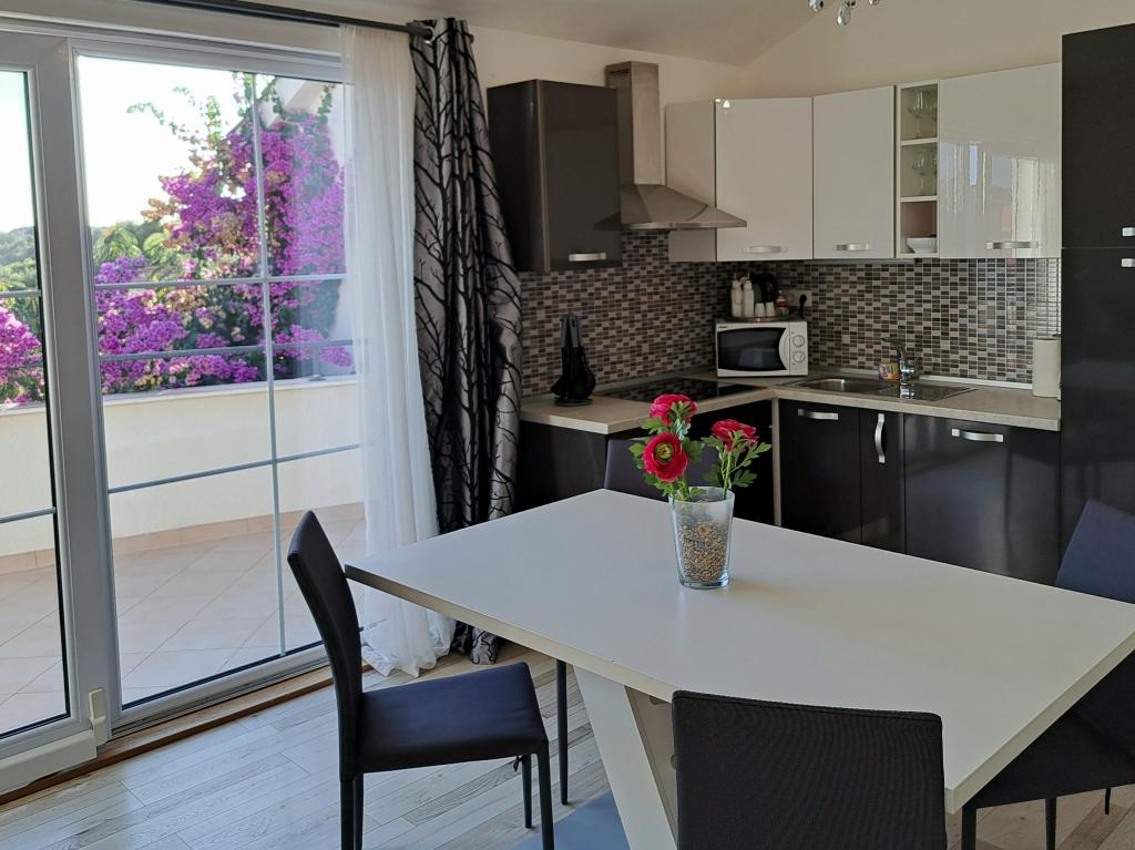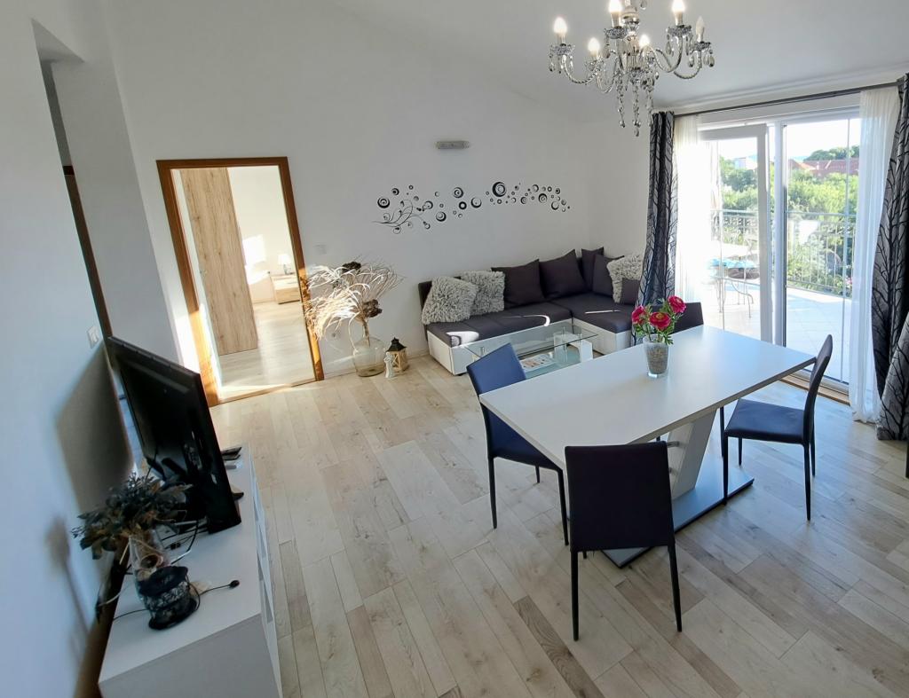 Apartamentele „OAZA MIRA” sunt situate într-o casă privată, de familie, cu 3 apartamente, cu o capacitate de la 4 la 18 persoane. Înconjurate de verdeață și flori, o odihnă pentru ochi și urechi. Aici veți fi adormiți și treziți de păsări. Apartamentele pe care le oferim au o suprafață de 65 m², două sunt cu două etaje (galerii cu un dormitor de aproximativ 20 m²). Toate apartamentele au două dormitoare, o sufragerie, o bucătărie complet utilată unde veți găsi tot ce aveți nevoie (cuptor cu microunde, prăjitor de pâine, cuptor, aparat de cafea, mașină de spălat), băi mari. Apartamentele sunt spațioase și au aer condiționat. Internet gratuit (wi-fi), TV prin satelit. Toate apartamentele au terasă sau balcon cu vedere la mare, grădină și dealuri. Parcarea privată gratuită este disponibilă în interiorul clădirii și nu este necesară rezervare.