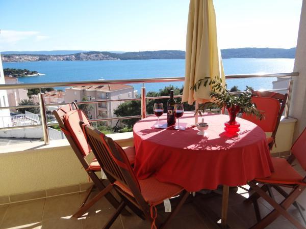 Apartament Marin este situat pe insula Ciovo, la numai 700m (10 minute de mers pe jos) de orașul istoric Trogir, aflat sub protecția UNESCO. Apartamentul cu o terasă, care are o vedere frumoasă la mare și pădurea de pini din pădure, este la numai 10 minute de mers pe jos de plajă. Apartamentul confortabil este format din două dormitoare cu paturi duble, o baie, o bucătărie complet utilată, o sală de mese și un living. Apartamentul este dotat cu aer condiționat și are un televizor cu programe internaționale și Wi-Fi gratuit.