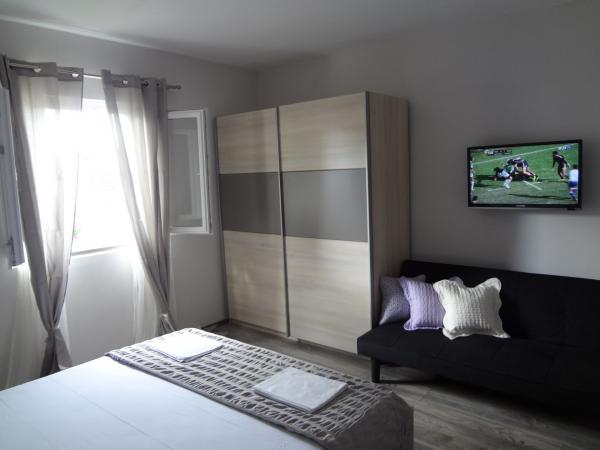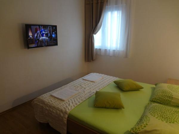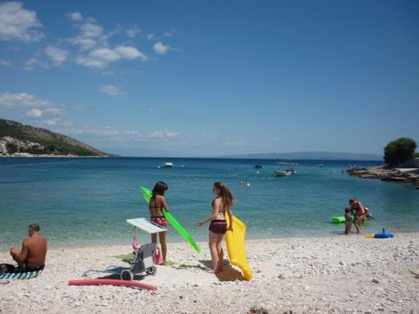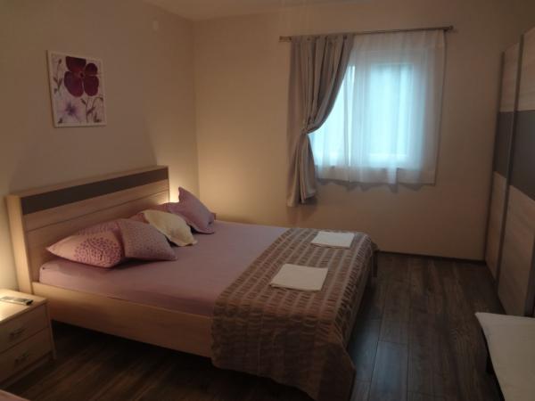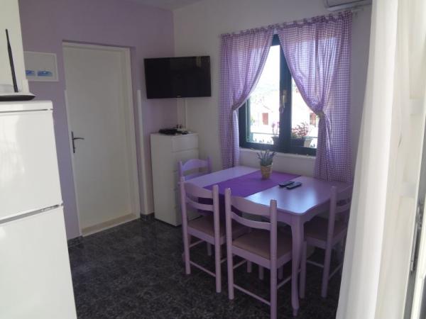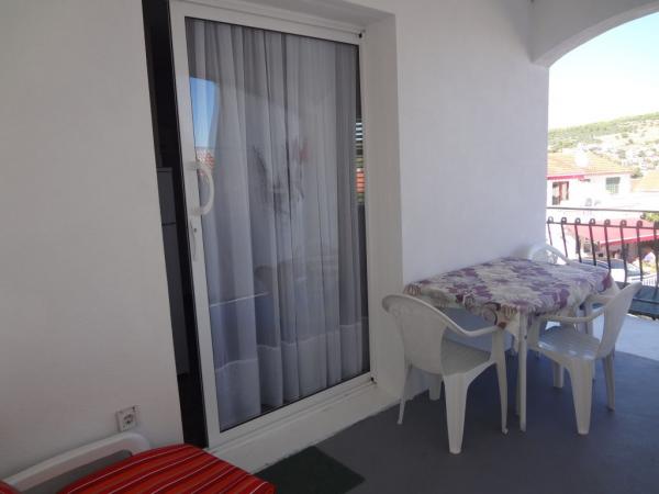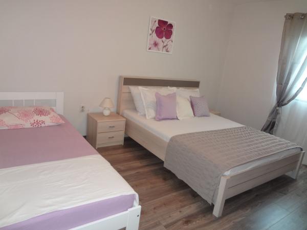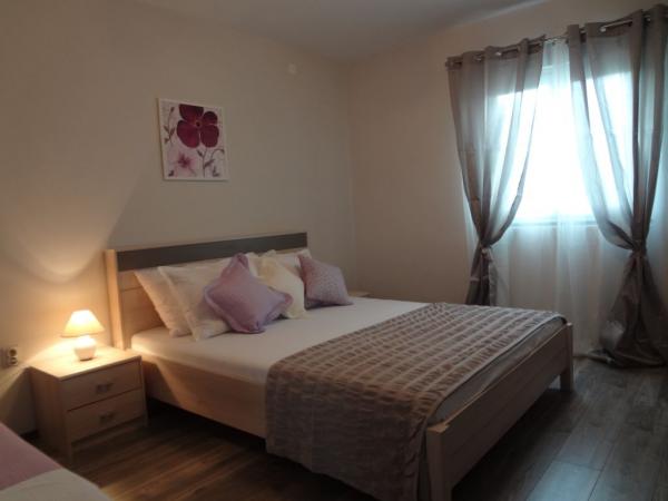 Oferim două apartamente (trei stele). Ambele apartamente sunt la primul etaj. Apartament A3 +1 are două dormitoare și o canapea extensibilă în camera de zi, apartament A2 +2 are o cameră mare, cu un pat dublu, un pat de o persoană și o canapea extensibilă. Ambele apartamente au paturi duble, bucatarie bine echipata, frigider mare, baie, parcare, aer condiționat, cabină de duș în aer liber, gratar si terasa. Okrug Gornji este situat pe Ciovo, care este conectat la continent. Astfel că practic este insulă și continent în același timp. Puteți călători fără nici o plată, la continent sau in orice alt oras cu masina ta prin pod, care este deschis 24 de ore pe zi. Din Okrug Gornji, puteți merge la Trogir cu mașina, cu autobuzul sau cu barca. Trogir este de 2-4 km de Okrug Gornji și Split este la numai 27 km de complex. Okrug Gornji este renumit pentru sale de mare de cristal clar și la 2 km de plajă lungă cu pietriș numit Copacabana. Trogir, natura curat originală, este foarte atractiv pentru jogging.