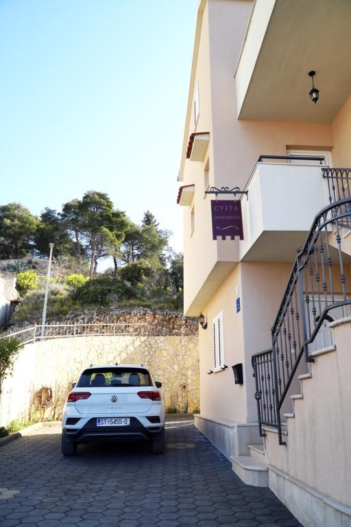 Apartamentele Cvita sunt situate în partea de sud-vest a insulei Ciovo, la 700 m de orașul Trogir și la 200 m de prima plajă. Două apartamente sunt situate la etajul doi al casei familiei, iar al treilea la parter și pot găzdui de la 2 la 4 persoane. Apartamentul cu 3 dormitor este situat la etajul 1. Apartamentul studio este la parter. Apartamentul (6) este situat în casa alăturată la parter. Toate apartamentele au vedere directa la mare (cu exceptia Studioului). Parcarea este asigurata in curtea din fata cladirii. Lângă casă există un grătar și o cameră pentru o mașină de spălat. Suntem deschisi tot timpul anului. Bine ati venit!