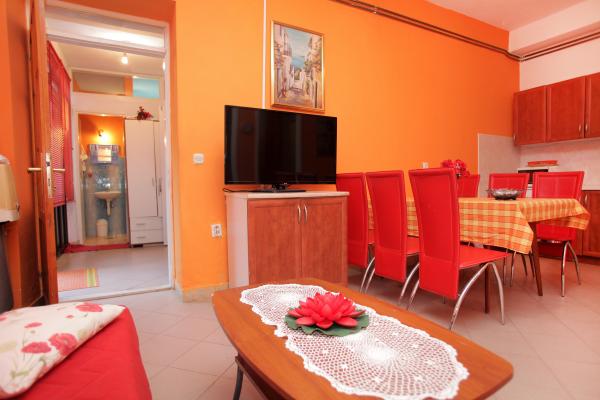 Nou apartament modern de 85m2, situat într-o casă familială într-o parte liniștită din insula Ciovo 500m de la plajă, și este ideal pentru vară Vacanța de familiile cu copii. Apartamentul este format din doua dormitoare (16m2, 16m2), cu patru paturi suplimentare, bucatarie, living, doua bai dotate cu dus, și o curte spațioasă, cu protectie solara. Curtea este un loc de parcare pentru doua masini si gratar. Apartamentul are aer condiționat (fără costuri suplimentare), WiFi gratuit, pat copii suplimentare și scaun pentru copii de alimentare, TV prin satelit (cu plasma). Masina de spalat este inclus în preț, fix-line de telefon pentru apelurile de urgență, filtru de cafea, cuptor cu microunde , etc