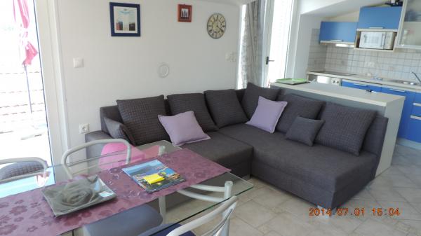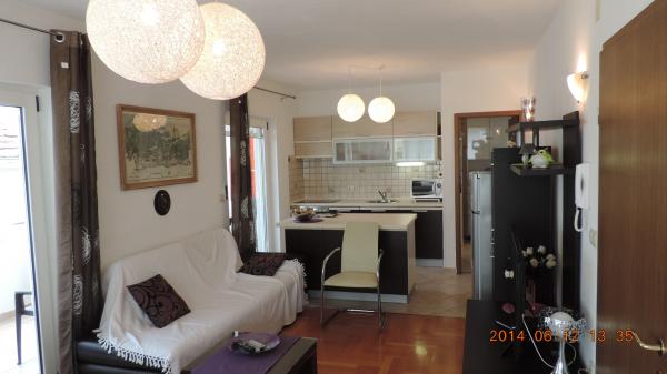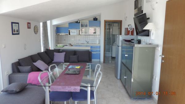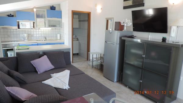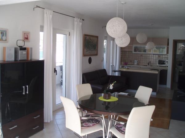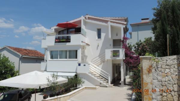Apartamente de familie - penthouse Tanja, casa atractiv de mare, potrivit pentru familii, grupuri mici și persoane fizice. Villa Tanja este situat în Okrug Gornji, pe insula Ciovo, aproape de mare, într-o locație liniștită, la doar o plimbare de cinci minute de plajă. Plaja se întinde în jurul golfului, cu o lungime de 2 km. Vila noastra are doua apartamente de lux / penthouse (4 1) și un apartament studio (2 0). La parter există o zonă pentru grătar mare cu care servește mâncăruri și vorbesc pentru 12 persoane. În fața casei parcare.