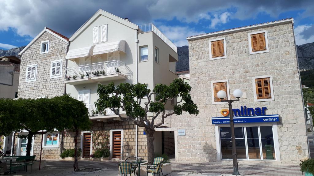 Facilitatea, Apartamente Čobrnić, Kraj 75, Tučepi este situată în centrul satului, în orașul vechi, o zonă protejată din Tucepi. Familia Čobrnić este implicată în turism încă din anii '50, cu o tradiție de peste 70 de ani. Clădirea este o clădire veche de familie reconstruită în 2015. Este format din trei apartamente, fiecare aproximativ 55 m2, la fiecare etaj există un apartament. Toate apartamentele au terase-balcoane cu vedere la mare. Echipamentul apartamentului este o combinație între vechi și nou, simplu și suficient, romantic și special! Facilitatea este situată chiar în centrul satului, lângă mare, portul de agrement, restaurante ... într-una dintre puținele ambiții rămase, vechi, din Tucepi.