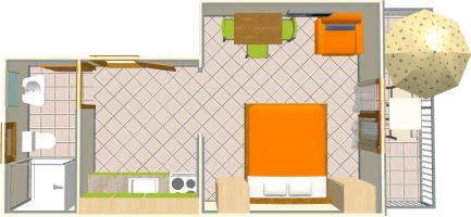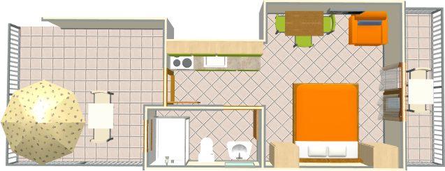 Apartament pentru patru persoane, cu două paturi suplimentare (57 m2)