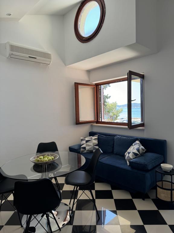 Apartamentele complet utilate și modern echipate sunt situate într-o zonă liniștită a orașului, în primul rând la mare. Apartamentele au balcoane sau terase cu vedere la mare, parcare privată și o zonă în aer liber. Plaja, magazinele, restaurantele, cafenelele, brutăria și alte facilități se află la maximum 10 minute de mers pe jos, așa că tot ce aveți nevoie pentru un sejur plăcut se află la câțiva pași. Un avantaj special al unității este acostarea privată pentru bărci situată în fața apartamentului, potrivită pentru bărci de până la 7 metri lungime. Barca este legată de o geamandură și de un debarcader, ceea ce permite o utilizare sigură și ușoară. Cazarea este potrivită în special pentru familiile care își doresc o vacanță liniștită la mare, având în același timp toate facilitățile în apropiere, fără a fi nevoie să folosească o mașină.