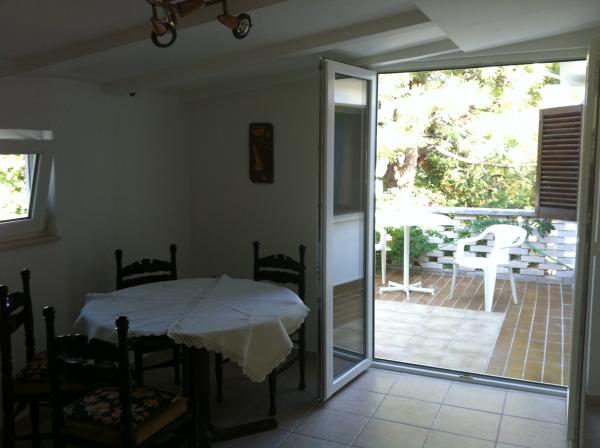 Apartament complet decorat cu terasă pe insula Vir (lângă Zadar) la 30 m de mare. Apartamentul are o intrare separată. În imediata vecinătate există o plajă, un centru de aprovizionare mare, brutării, ofertă proaspătă de fructe și legume locale, bancomat, birou de schimb valutar, cafenele și restaurante. Apartamentul are 2 dormitoare mari, bucătărie complet utilată cu zonă de luat masa (piept de sertare), baie, hol și terasă. Insula Vir este conectată la pod cu podul. Plajele sunt pietricele, nisipoase și stâncoase. Zadar este la 20 de minute de mers cu mașina, conectat printr-un nou drum rapid.