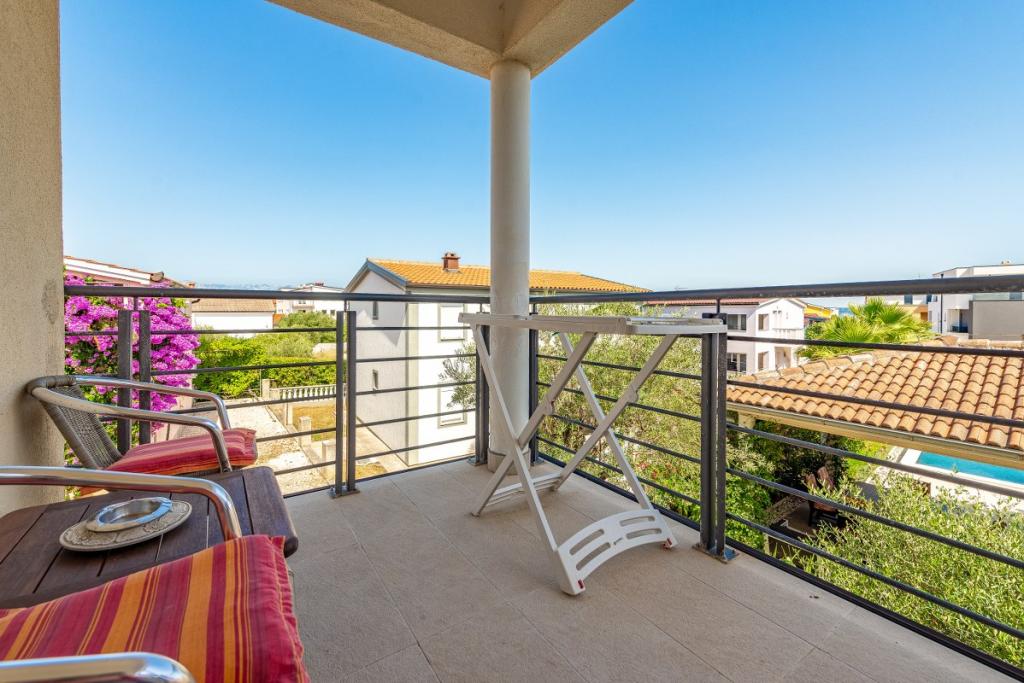 Apartamentele sunt situate la etajul 1 al casei de vacanță, la aproximativ 180 m de plaja Jadro și de centrul orașului Vir. Plaja Jadro, cea mai faimoasă plajă de pe Vir. Apartamentele sunt spațioase, cu un dormitor care are un pat francez și un alt pat suplimentar. și o cameră de zi cu un pat extensibil. Proprietarul acceptă 2 adulți cu doi copii sau 3 adulți și 1 copil. Sunt 2 terase.Terasele sunt orientate spre mare, a doua terasa este in partea de nord.Apartamentele au aer conditionat, TV, satelit, wifi. Parcarea este in fata apartamentului. Excursiile in Kornati, Parcurile Nationale Krka, Paklenica, Plitvice sunt organizate prin agentia Vir turizam. Închiriere de biciclete, bărci cu motor și bărci. Scoala de scufundari. Piscina poate fi folosită doar din 01.06. - 30.06.