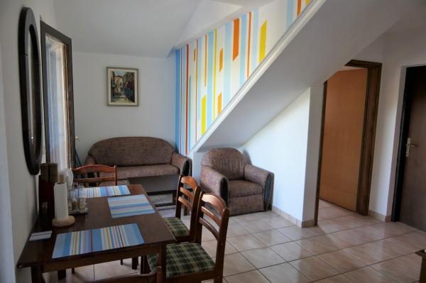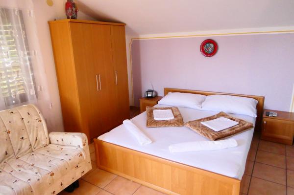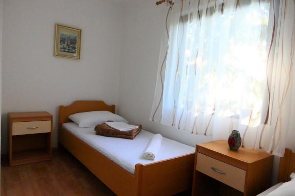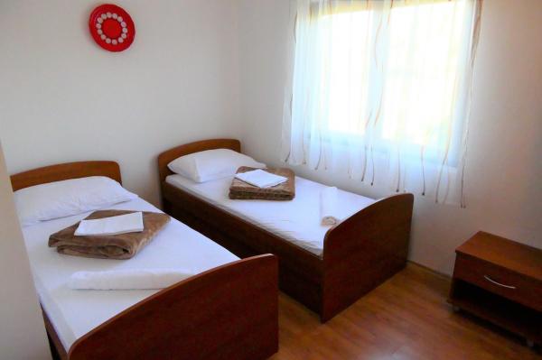 Ne sunt situate în zona Radovanjica aproximativ 300 de metri de plajă, în golful Radovanjica. Suntem în măsură să oferim apartamente de inchiriat intr-o zonă separată de 30m2 si o terasa de 9m2. Apartamentul este nou construit și echipat recent: un pat dublu suplimentar, baie, bucatarie, TV, aer condiționat. Avem, de asemenea un apartament mare de terasa 70m2 10m2. Apartamentul are o intrare separată și constă dintr-o cameră de zi comună legată de bucatarie, baie si terasa, si trei dormitoare, care pot fi închiriate și independent.