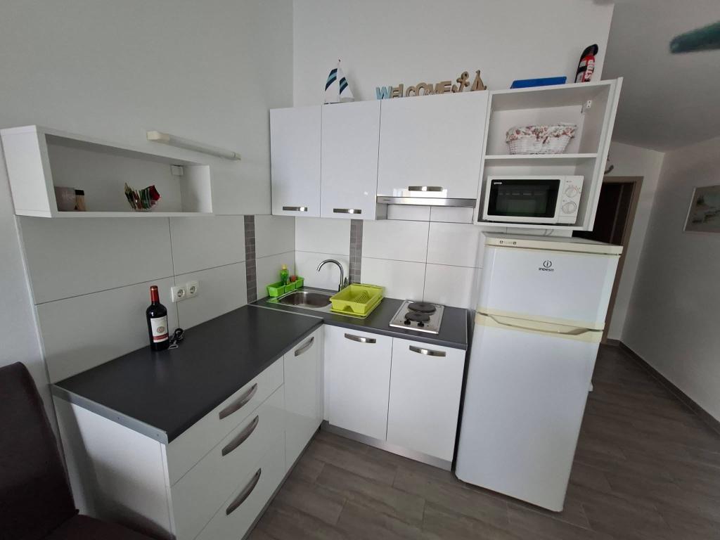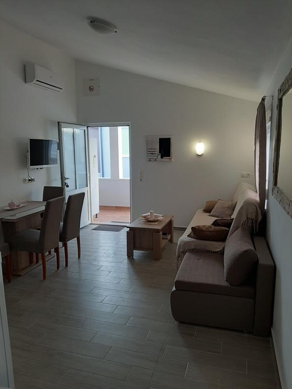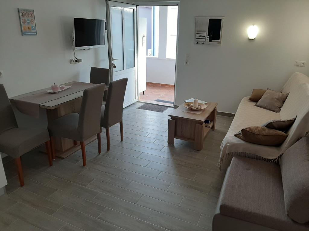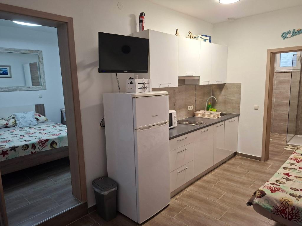 Pe insula Vir, la doar 150 de metri de mare, se află două apartamente cu o capacitate de până la 5 persoane. Apartamentele sunt modern dotate, cu aer condiționat și adaptate pentru un sejur confortabil. Fiecare apartament are propria terasă cu zonă de relaxare, iar în curtea împrejmuită oaspeții au acces la parcare privată și grătar. Apropierea mării și a plajei, împreună cu facilitățile practice, fac din aceste apartamente o alegere potrivită pentru familii și grupuri mici de prieteni care caută cazare în imediata apropiere a tuturor facilităților principale. Apartamentele sunt potrivite pentru cazarea a până la 5 persoane. Acestea sunt compuse din două dormitoare, apartamentele au o baie cu duș și mașină de spălat și o bucătărie complet utilată conectată la camera de zi. Pentru relaxare și viață în aer liber, există și o terasă cu zonă de relaxare. Apartamentele sunt cu aer condiționat și decorate modern, ideale pentru o vacanță în familie sau un sejur într-un grup mai mic de prieteni.