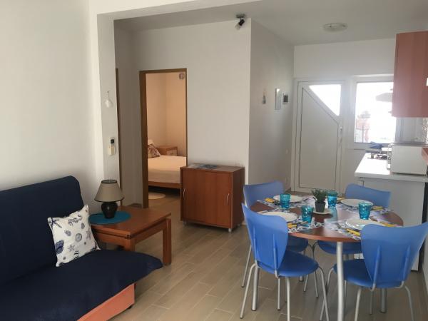 Apartments Nono M-am plasat în centrul orașului, la 150 de metri de frumoasa plaja de nisip și pietriș Jadro. In apropiere se afla magazine, piata, piața de pește, biserica, farmacie, oficiu postal, restaurante, cafenele și punct de plecare la malul apei, pentru nave de croazieră în apele de Zadar. Poziția de apartament este ideal pentru o plimbare de-a lungul plajei și de a explora orașul, fără o mașină. Apartamente moderne va satisface nevoile dumneavoastra de confort și vacanță lipsită de griji. Pentru o ședere plăcută la dispozitie un gratar, foisor si parcare acoperită. Apartamentele recent renovate sunt dotate cu aer condiționat, TV prin satelit, frigider, cuptor cu microunde, prăjitor de pâine, radio și mobilier modern.