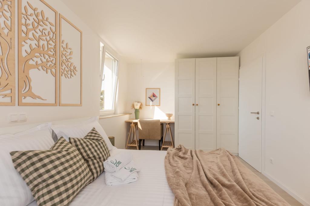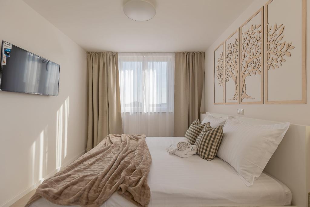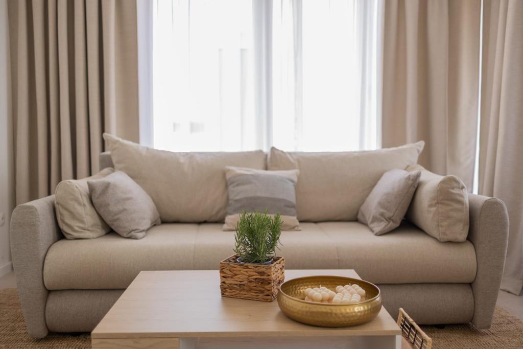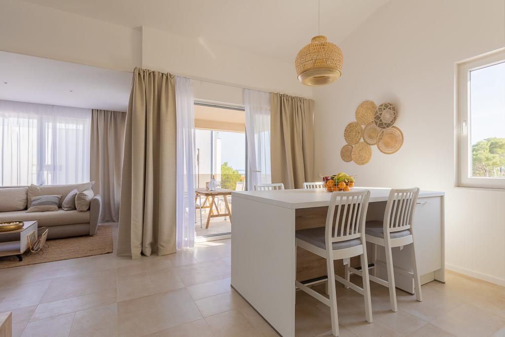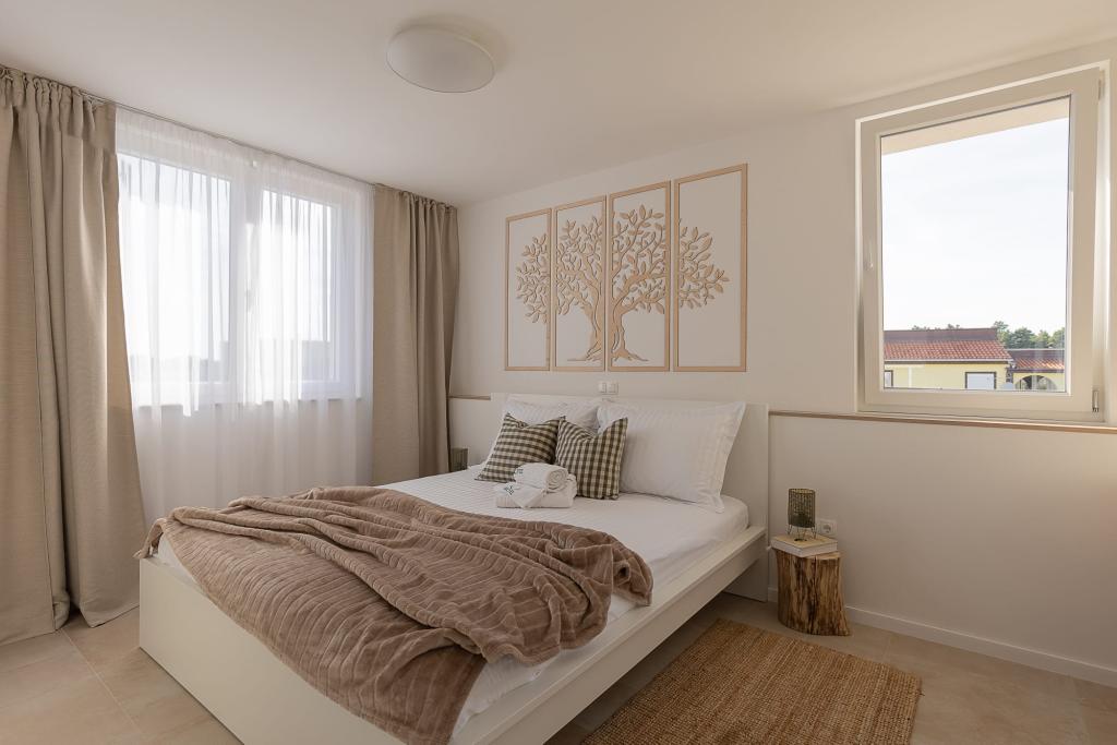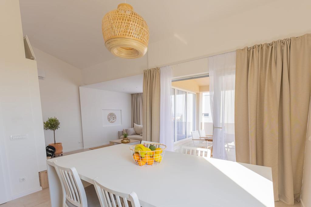 Apartamentele noastre de lux sunt situate central, aproape de toate restaurantele, magazinele și principalele atracții, ceea ce le face alegerea perfectă pentru o vacanță fără griji, fără a fi nevoie de o mașină. Plaja se află la mică distanță de mers pe jos. Proprietatea este o clădire complet nouă, decorată cu un accent deosebit pe stil, eleganță și calitate. Apartamentele spațioase și mobilate luxos oferă un nivel ridicat de confort, iar fiecare apartament are un balcon sau o terasă ideală pentru relaxare în timpul zilei și al serii. Interioarele sunt atent proiectate și dotate cu materiale naturale care creează o atmosferă plăcută, caldă și sofisticată. Oaspeții au la dispoziție parcare privată direct la intrarea în clădire, ceea ce contribuie și mai mult la confortul și comoditatea șederii lor. Aceste apartamente sunt ideale pentru oaspeții care caută o combinație între o locație excelentă, lux modern și un sentiment de acasă.