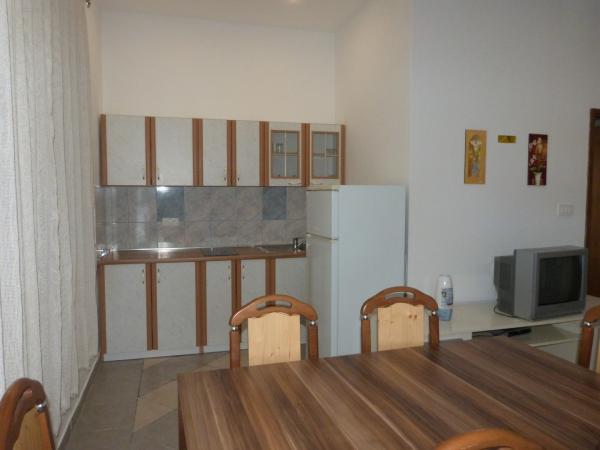 Complexul este situat într-o zonă liniștită din Vira, lângă plajă, centrul și toate celelalte obiective turistice. Aproape de cazare pe cea mai apropiata plaja se afla 1 restaurant, 3 cafenele, 1 brutarie, 1 fast-food si un parc luna pentru copii. Puteți ajunge în centrul orașului printr-o plimbare plăcută la 10 minute de mare, unde există diverse atracții, mai multe restaurante, pizzerii și cafenele de noapte pentru tineri. Muzica live se desfășoară în weekend, unde vă puteți relaxa gratuit cu cântăreți populari și celebri croați. Apartament P1 - parter - 2 camere Apartament P2 - parter - 3 camere (cu 2 grupuri sanitare cu baie) Apartament K - la etaj - 2 camere Apartament D - la primul etaj - 3 camere