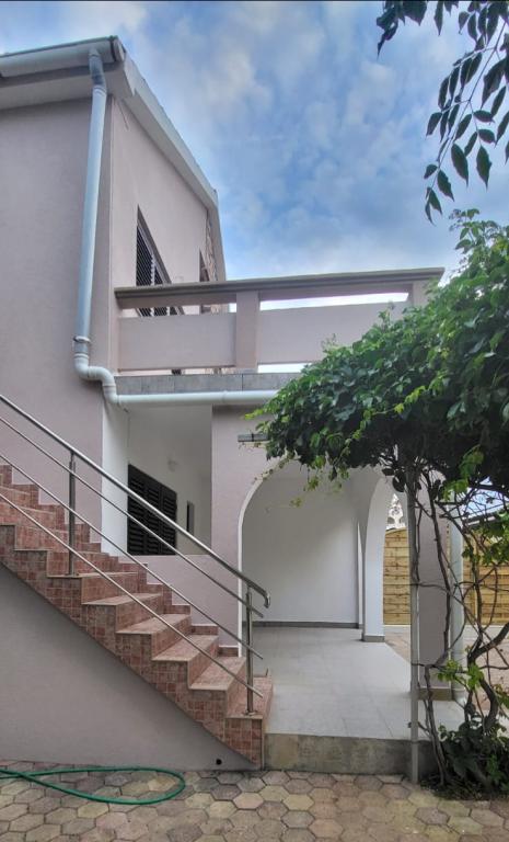 Casa semidecomandata formata din parter si etaj. Există, de asemenea, o parcare privată (pentru 2 mașini) și o curte asfaltată. Casa a fost construită acum 20 de ani și renovată parțial anul trecut. Parterul este format dintr-o bucatarie cu zona de luat masa, living, baie si terasa (ascunsa de lumina directa a soarelui si inconjurata de verdeata). Etajul este legat de parter prin scari exterioare. Etajul este compus din două dormitoare, un balcon, o mică toaletă cu duș și un hol închis. Prima cameră este dotată cu mobilier de epocă din moștenirea familiei combinat cu piese moderne noi. A doua cameră este dotată cu mobilier alb, simplu, modern. Casa este spatioasa si ofera tot ce ai nevoie pentru un sejur placut si relaxant. IMPORTANT: * Apa de la robinet nu este numai sigură de băut