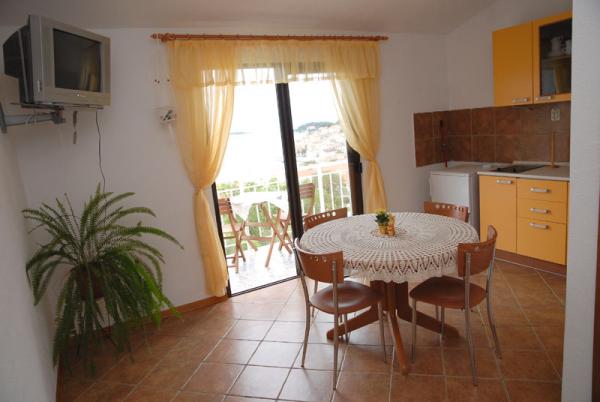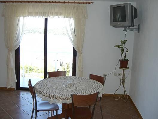 Facilitatea este situat într-o zonă liniștită a Visa în casă familială la 200 m de orașul vechi. Distanta de la mare este de aproximativ 150 m la faimoasele restaurantele de top în jurul valorii de 100 m, iar cel mai apropiat magazin este de aproximativ 200 de metri de apartamente are o bucătărie, sufragerie, baie si doua dormitoare (unul dublu și unul cu paturi twin). Este posibil să se utilizeze pat suplimentar. De la balconul apartamentului ofera o priveliste uluitoare asupra golfului frumos, care va lasa fara respiratie. Apartamentul este cu aer condiționat și echipate (TV prin satelit). Servicii de internet wireless și taxele incluse în preț. Upoteba grătar în grădină este, de asemenea, dostupna.Gosti apartamentele au parcare privată. Va asteptam cu băutură de bun venit