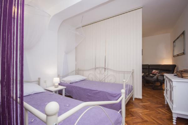 În cartierul liniștit al frumoasei Vodice, apartamentul romantic Lilly vă așteaptă să vă odihniți și să vă relaxați. Într-un apartament renovat (70 m2) de nuanțe purpuriu relaxante, începeți dimineața pe o terasă (10 m2) cu cafea și o lectură bună, cu vedere la grădina plină de plante și flori mediteraneene. Apartament Lilly este situat la parterul unei case de familie. În curte există o parcare gratuită pentru oaspeți și un grătar. În imediata vecinătate se află o plajă frumoasă cu pietriș, cu o nuanță naturală (7 minute pe jos), unde puteți merge după o zi însorită și puteți savura un apus de soare. Promenada vă duce în continuare în centrul orașului Vodice, unde vă așteaptă multe restaurante excelente, cafenele și cluburi. Puteți petrece seara pe terasă cu un pahar de vin bun și lumânare, sau vizitați disco clubul din apropiere Hacienda și clubul Exit. Avantajul cazării în Aparmana LILLY este că oferim cazare de calitate și frumos, într-o locație excelentă unde majoritatea se pot face pe jos și parcarea este gratuită. Oferim facilități suplimentare: biciclete, caiace, pescuit organizat cu caiace. Vodice este situat la numai 10 km de Šibenik, care are un centru cultural și istoric bogat și unul dintre cele mai frumoase catedrale ale Sfântului Iacob (patrimoniul mondial UNESCO). În apropiere se află frumoasele două parcuri naționale, Krka Falls și Kornati. Urmăriți-ne la FB Apartment Lilly, Vodice, Croația