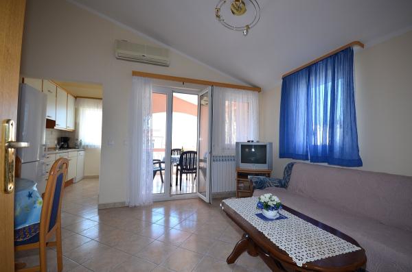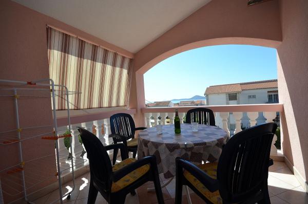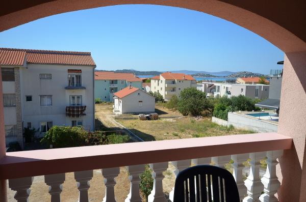 Va oferim apartamente complet echipate și mobilate într-o parte liniștită din Vodice, la numai 400 m de plaja si la 900 m în oraș. Apartamentele au vedere la mare. Casa are o curte inchisa si locuri de parcare.