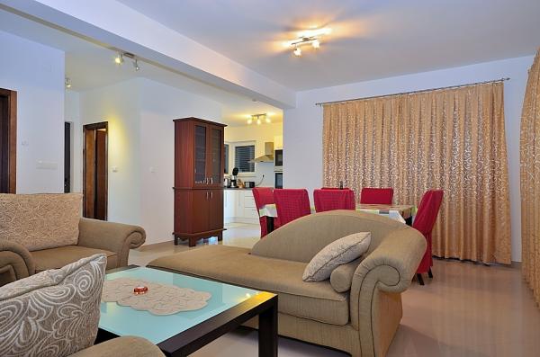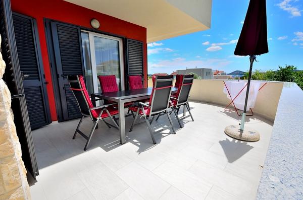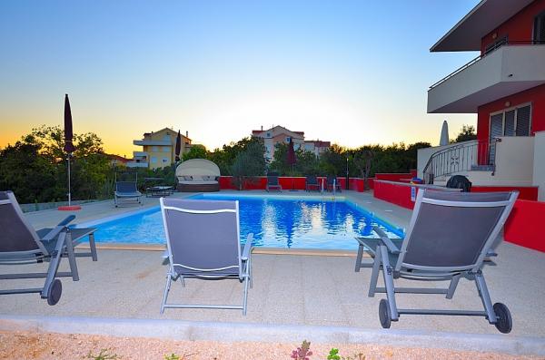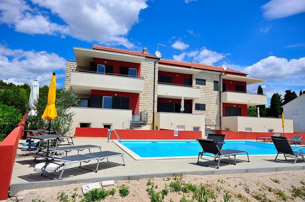 Vodice- casa nou construita, cu o casa de piscină 6 2, 400 m de plaja, 500 m de plajă albastru (plajă cu steag albastru) Casa este compusa din parter, unde toaletele, bucatarie si living cu o terasă mare la primul etaj sunt trei dormitoare, baie si terasa. Cu privire la utilizarea piscinei, 2-3 locuri de parcare, gratar, Wi-Fi, TV, prin satelit,