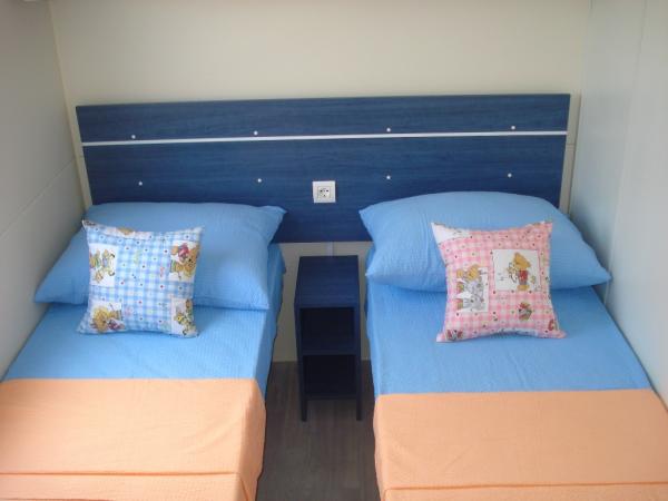 Un complex nou construit din opt case mobile Shelbox (fiecare 24m2, doua dormitoare, unul cu pat dublu si unul cu doua paturi separate, TV prin satelit, aer condiționat, bucătărie și toaletă). Locația este ideală pentru vacanțe în tăcere pentru că nu suntem aproape de drumul principal, este, de asemenea, ideal pentru familiile cu copii, deoarece nu există nici un trafic și există o mulțime de spațiu liber. Distanta de la mare este 300m (plimbare de 3-5min), iar în acest an a fost remodelat de plajă și marcate cu steaguri albastre (sondaj interactiv: http://www.infovodice.com/pano/srima/Srima.html). Pentru fiecare loc de parcare de rulote. Pentru a rămâne mai puțin de 3 zile pretul este de preț de 20% mai mare. Impozite plătesc separat, 1 € per persoană și pentru copii sub 18 ani € 0.50.