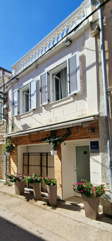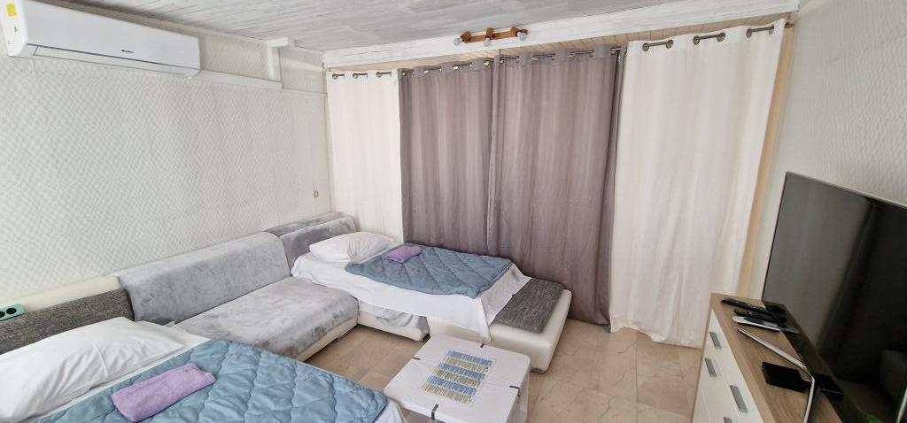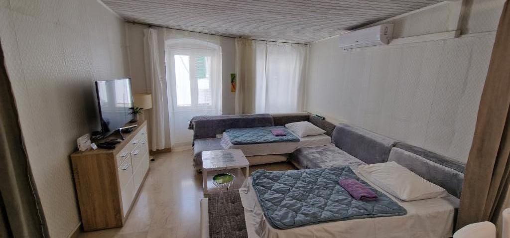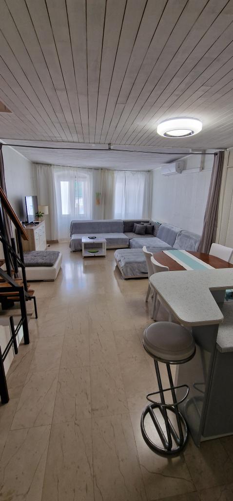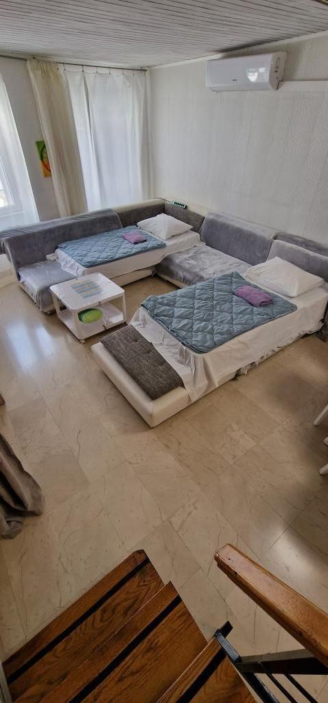 Apartamente in centru la 40 m de malul apei si portul de feriboturi. Este chiar lângă plajă. Casa este pe doua etaje, 100m2. - Apartament garsonieră 45m2 pentru 2 persoane, living, bucătărie, baie wc - Apartament 75m2, 1 cameră dublă cu terasă, living pentru 2 persoane, baie wc, bucătărie. - Apartament 100m2, 1 camera dubla cu terasa, 2 camere single, living pentru 2 persoane, 2 canapele cu saltea, bucatarie, baie wc Toata casa este dotata cu aer conditionat si are internet cu ecran plat cu un TV LCD mare. Parcarea este în apropiere.