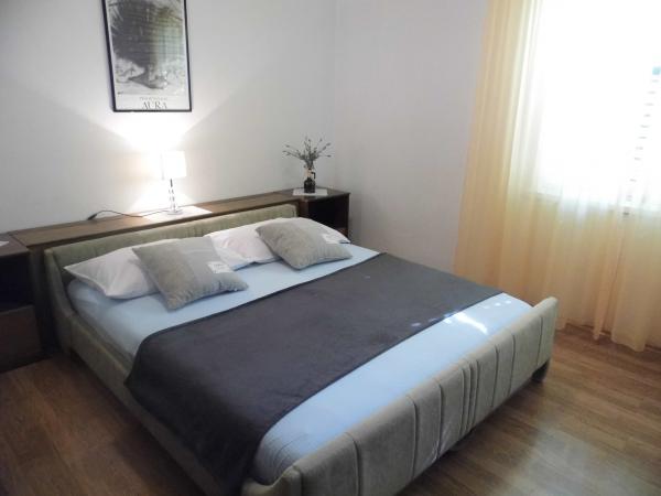 Apartamente Patru PLMS nudu o vacanță plăcută și ușor într-o parte liniștită a orașului. Apartamentele sunt situate la doar 7 minute de mers pe jos de centrul orașului, astfel încât să atât de zgomot de la celebra viata noconog nu se va supăra, dar din nou, vei fi suficient de aproape pentru a ajunge rapid la ea. Cu grătar de zi cu zi accesibilă poate fi servit la masa în curtea apartamentului și objedoati sunetele greierilor din plantația de măslini vecine și briză plăcută.