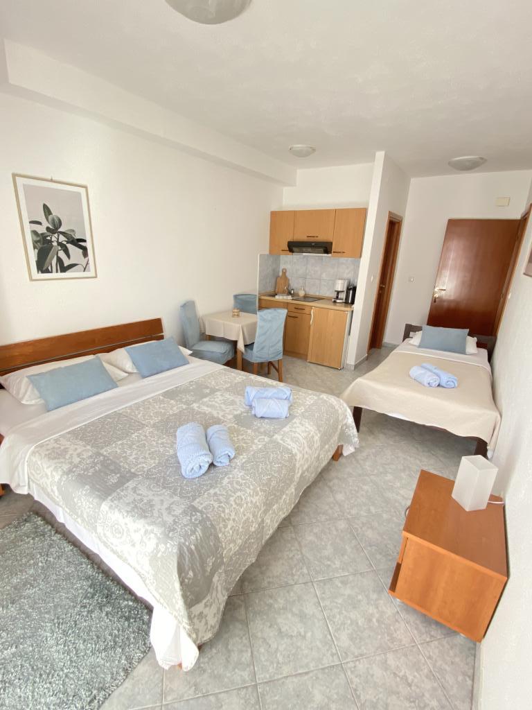 Apartamente complet echipate într-o zonă liniștită din Vodice. Aproape de centru si plaja. Suntem la 5 minute de centru unde sunt magazine, cafenele, restaurante si piete. Suntem la 7 minute de mers pe jos de plaja. Facilitatea noastră este împodobită cu o grădină frumoasă, echipată pentru grătar, plajă, relaxare sau luat masa. Oferim parcare gratuita.