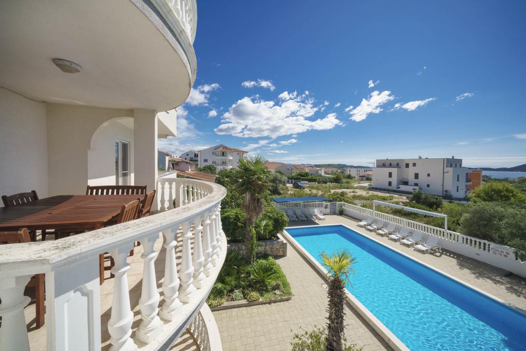 Casă pe un teren de 1000 m2, într-o zonă liniștită din Vodice, cu vedere la mare, cu măslini. Mare și plajă 500 m. Centrul de la Vodice, cu restaurante la 1 km.