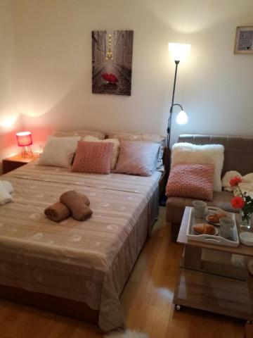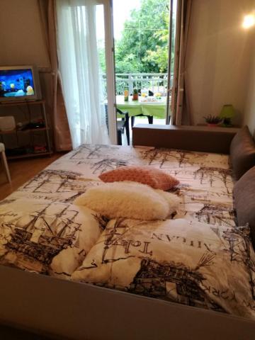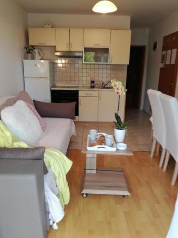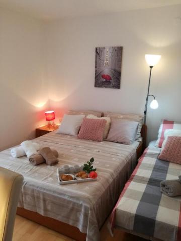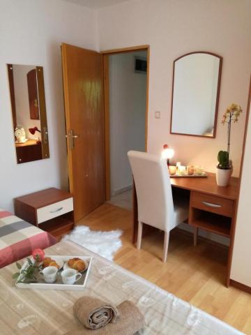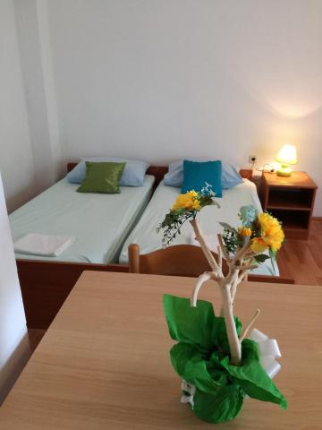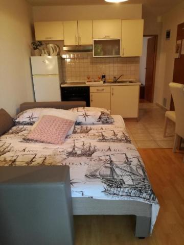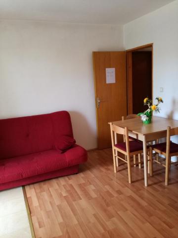 Dragi oaspeți! Într-o casă familială, la parterul înalt, închiriem 1 dormitor și 1 apartament studio. Apartament cu un dormitor pentru 5 persoane. Dormitorul are un pat twin și un pat suplimentar (fotoliu 80x190). Camera de zi are o canapea extensibilă cu trei locuri (pat 160x200). Apartamentul studio poate găzdui 3 persoane sau 4 dacă există 2 copii. Are un pat pentru 2 persoane și un pat cu trei uși 140x200. Apartamentele sunt dotate cu aer condiționat, TV, wi-fi, grătar și parcare gratuită în fața casei. Studioul are, de asemenea, o mașină de spălat. În fața unuia și celălalt apartament există o terasă acoperită spațioasă potrivită pentru a socializa cu prietenii. La parterul casei există o piață bine aprovizionată cu alimente de bază și alte necesități. Plaja albastră cu plajă cu nisip și pietriș și tot ceea ce este necesar pentru o vacanță plăcută (restaurante, cafenele, parc acvatic și alte facilități) este la 400 m distanță și la distanțe atât de mari față de primele cafenele și restaurante din centrul orașului. Taxa de stațiune, wi-fi, aer condiționat, parcare inclusă în preț.