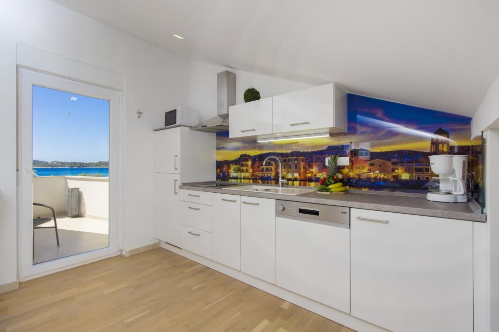 În Vodice, la 50 de metri de mare, apartamente atractive recent renovate și complet echipate, clasificate cu patru stele. Trei apartamente pe trei etaje (parter, etaj 1, etaj 2), fiecare cu intrare separată, vedere la mare și loc de parcare. Apartament 1. la parter, este format dintr-o bucătărie, sufragerie și sufragerie în ansamblu, cu acces la terasă, dormitor și baie. Bucătăria este complet utilată și utilată cu ustensile de bucătărie și electrocasnice (cuptor cu microunde, mașină de spălat, ceainic, filtru de cafea). Apartament la etajul 1, este format din bucătărie, sufragerie și living în ansamblu, cu acces la terasă, dormitor și baie. Bucătăria este complet utilată și utilată cu ustensile de bucătărie și electrocasnice (cuptor cu microunde, mașină de spălat, ceainic, filtru de cafea). Apartament la etajul 3, studio, bucătărie, sufragerie și dormitor în ansamblu, cu terasă mare și vedere la mare. Lenjeria de pat, prosoape, închiriere biciclete, taxa de cazare sunt incluse în preț.