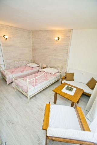 Echipat complet apartament cu un dormitor cu un pat dublu și o cameră de zi care conține zonă vizual separată cu două paturi suplimentare. Apartamentul are, de asemenea, o baie, o bucătărie cu o sală de mese și o terasă. Dispune de parcare. Oaspeții pot folosi, de asemenea, gratar.