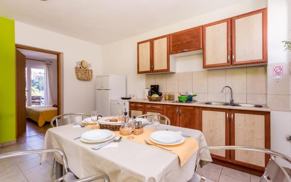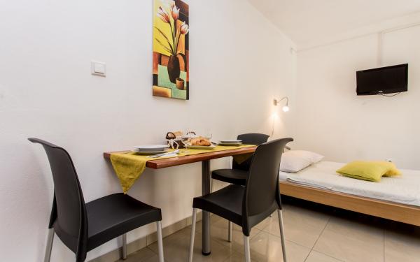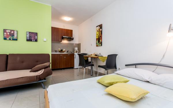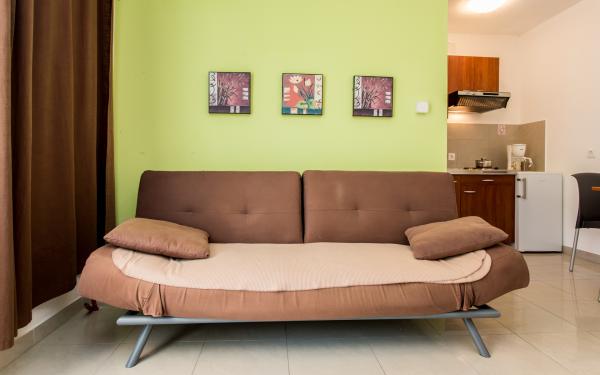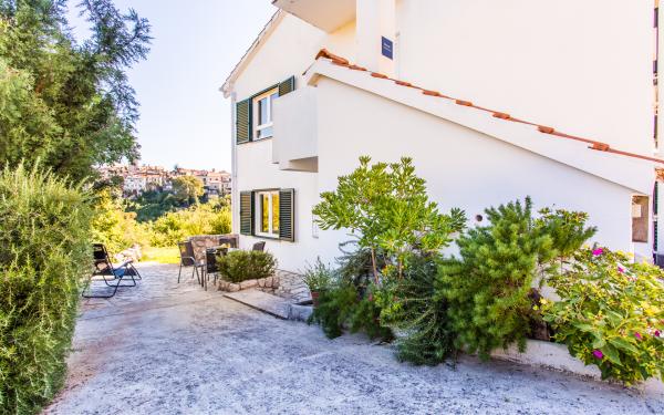 Apartamentele noastre sunt situate într-o parte liniştită a oraşului, de unde se întinde o vedere frumoasă a oraşului vechi şi mare. Suntem inconjurati de natura pură, şi la mare dintre noi la numai 200 de metri distanţă. Apartamentele sunt situate la 10 minute de mers pe jos de centru şi de plajă.