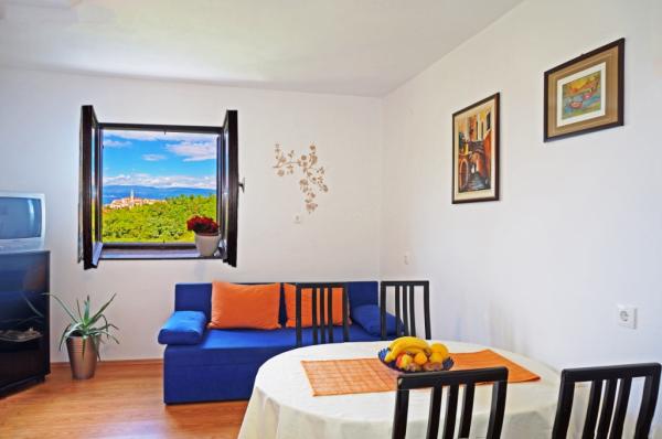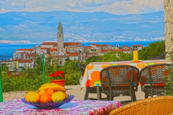 Apartament și studio Noa sunt situate într-o zonă liniștită Vrbnik, înconjurat de verdeață, cu o vedere frumoasă la mare și orașul vechi. Imobilul este situat la 10 minute de mers pe jos de centru și plajă. Fiecare unitate are intrare proprie, parcare și o terasă separată.