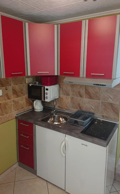 Apartament recent renovat într-un sat liniștit Zablace lângă Šibenik. Complexul este situat la 300 de metri de mare și de centru. În centru există restaurante, cafenele și magazine. Bakeria este la 1 minut de mers pe jos. Stația de autobuz a drumului Peko al apartamentului, autobuzul local se desfășoară în fiecare oră în centrul orașului Šibenik. Pe o rază de 20 de kilometri veți găsi numeroase atracții precum: NP Krka, Orașul Vechi, Cetatea, Promenade, Trasee de biciclete și stațiunea Solaris Tourist Resort. Apartament (1) este compus din living cu bucătărie și sufragerie, baie și dormitor. În camera de zi există un pat suplimentar pentru două persoane (160x200). Exteriorul are o curte frumos amenajată sub umbra naturală a viilor și posibilitatea de a gratări. Apartament (2) conține tot și apartamentul (1).