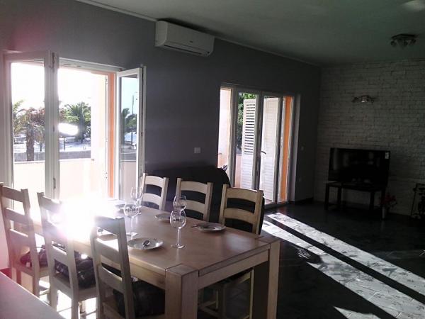 Apartamentul este situat în centrul orașului, lângă mare, 20 m de cele mai populare plaje din zona. plajă de nisip este de 200 m teren de baschet și pistă de bowling la doar 100 de metri, în timp ce instanța de la distanță de volei de 200 m, 500 m teren de fotbal, loc de joaca 10 de metri trasee de jogging excelente și poteci pentru mersul pe bicicleta este de 5 minute. cea mai apropiată pizzerie este de 20 m și un restaurant de 200 de metri. Apartamentele sunt moderne și mobilate luxos. Apartamentul are doua dormitoare, doua bai (una este în interiorul camerei și are un duș, o a doua baie cu hidromasaj). Fiecare apartament este dotat cu o bucătărie mare, cu bar, mașină de spălat vase și frigider congelator mare. Facilitate are doua balcoane cu vederi excelente ale arhipelagului. există televizoare 3D, prin satelit, acces la internet, aer condiționat. clădire are o grădină mare, cu sase locuri de parcare, duș în aer liber, masă în aer liber și un loc unde să stea în curte, un șemineu din piatră în aer liber.